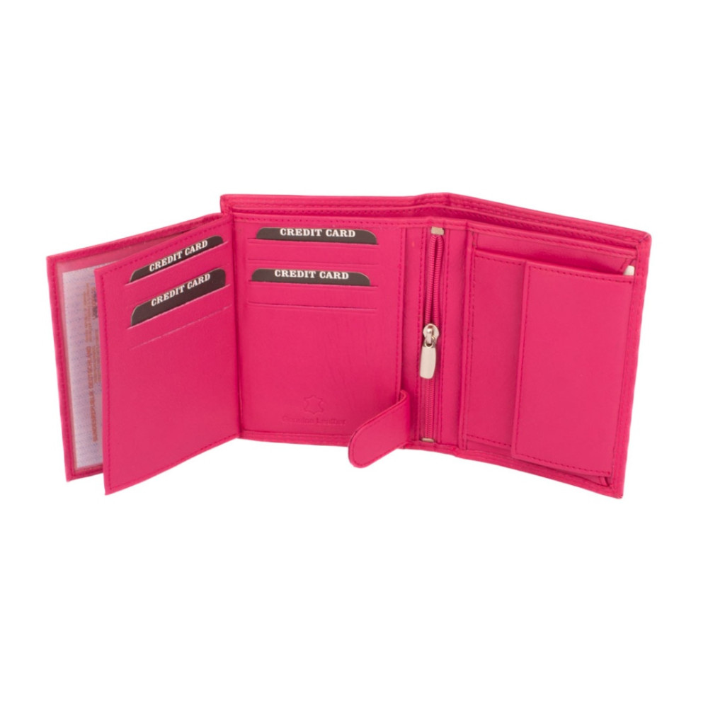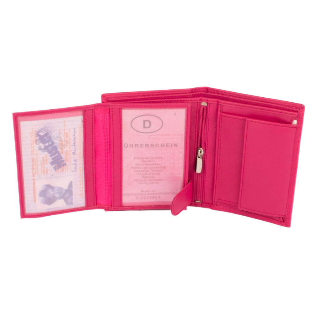 Kožená peněženka barevná do které se vejdou i nejen vaše peníze, karty ale i doklady. Po otevření peněženky máte ihned přístupné kapsy na karty, jednu z nich průhlednou. Po pravé straně je kapsa na vaše mince, aby necinkaly v kapse. Mincovník se uzavírá klopou s pevným drukem. Nad kapsami jsou dvě velké kapsy na bankovky. Vejdou se všechny české, bez přehnutí.