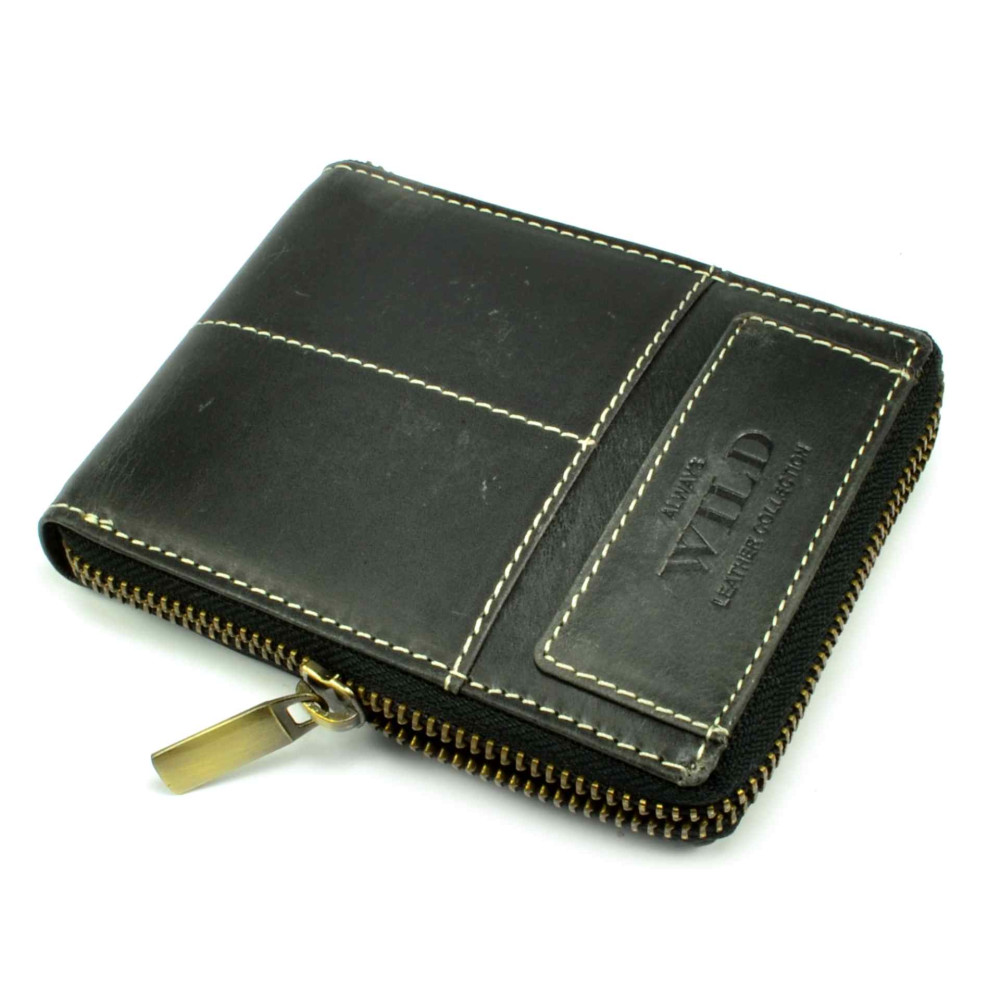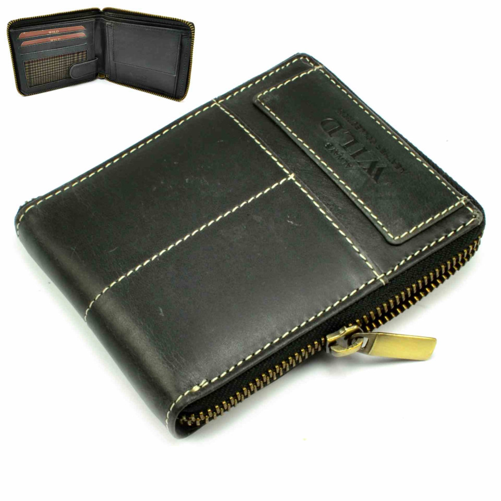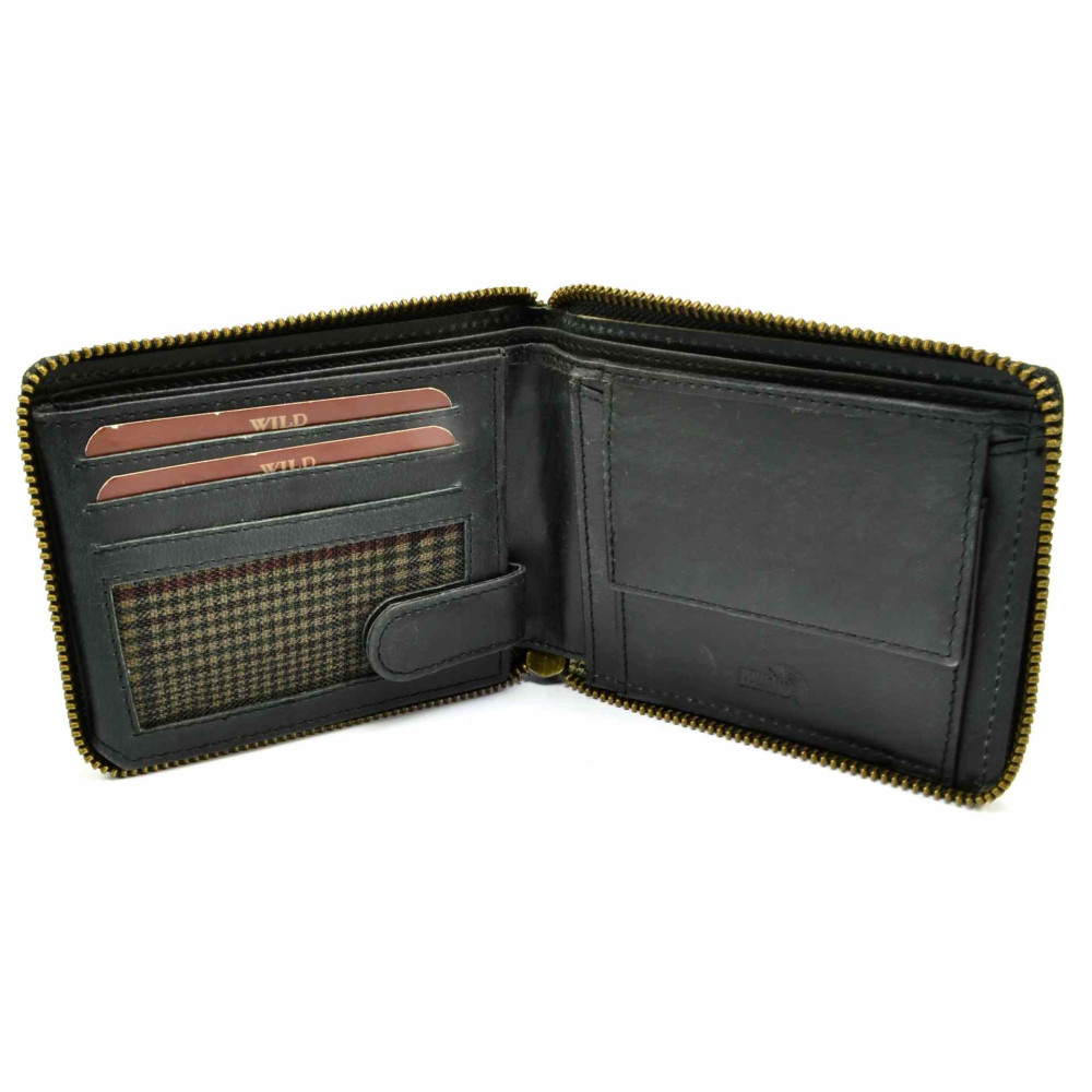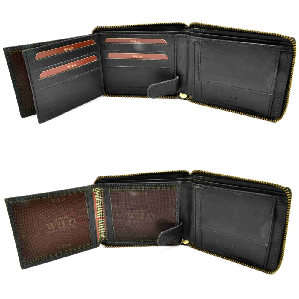 Pánská kožená peněženka v barevné kombinaci černé barvy se bílým prošíváním. V pánské kožené peněžence najdete dostatek kapes na platební a jiné karty, velké průhledné kapsy doklady a velké kapsy na bankovky. Nedílnou součástí kožené peněženky je mincovník uzavíratelný klopou s pevným drukem. Kožená peněženka je vyrobena z pravé kůže, je z kolekce značky Always Wild a je dodávána v dárkové krabičce.