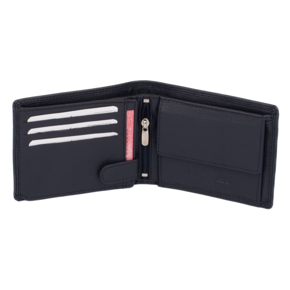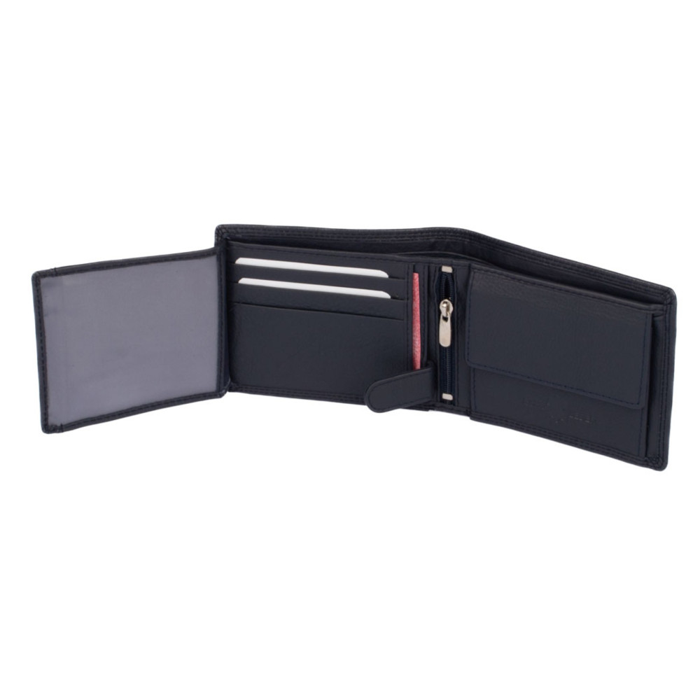 Kožená peněženka pánská Dariya bags temně modré barvy je vyrobena z pravé měkoučké nappa kůže. Kožená peněženka pánská má dostatek kapes na karty, dvě velké kapsy na bankovky a samozřejmostí je mincovník. Kožená peněženka pánská je vyrobená z pravé kůže a je dodávána bez dárkové krabičky.