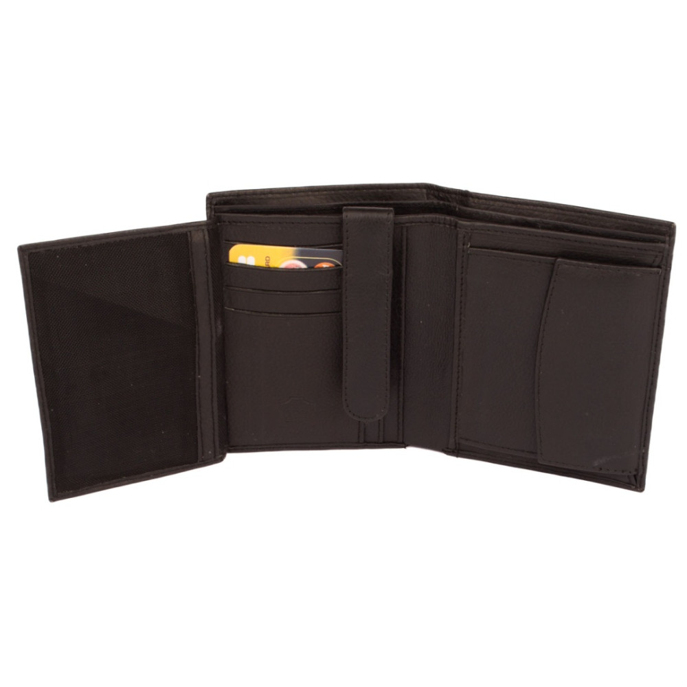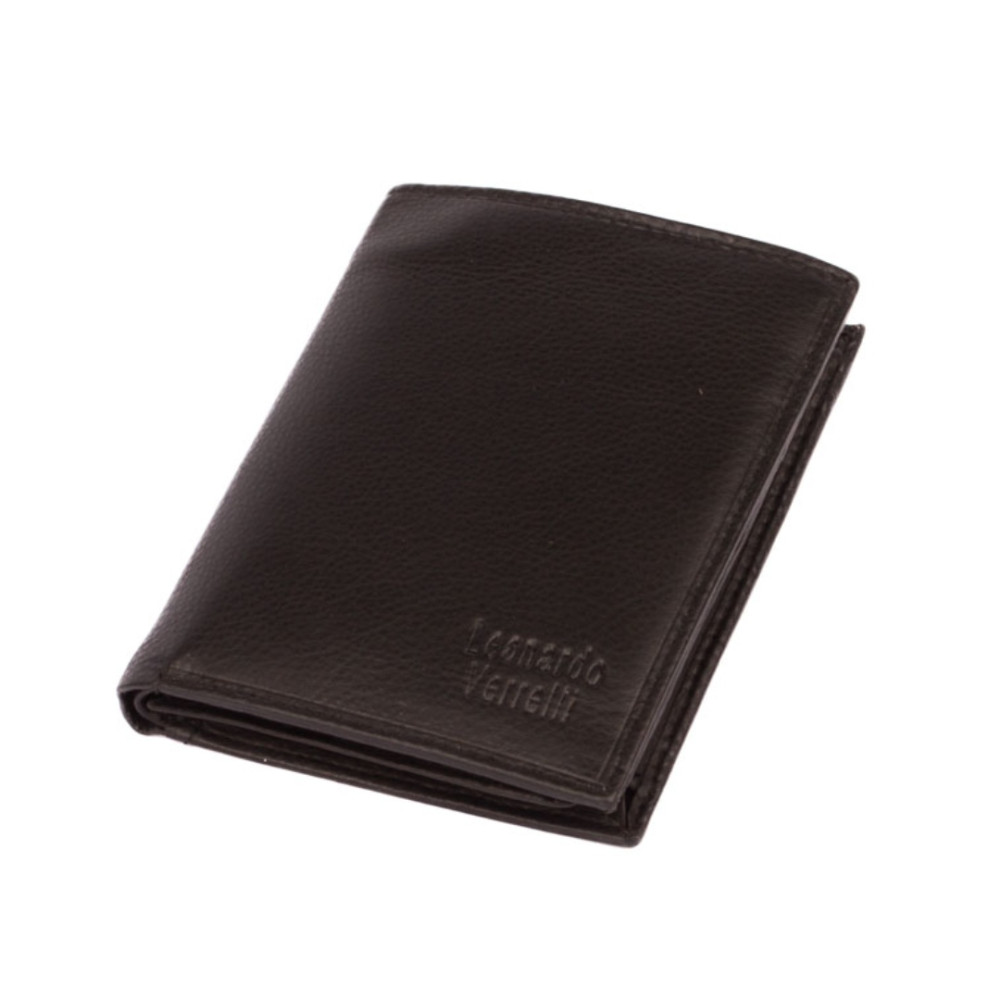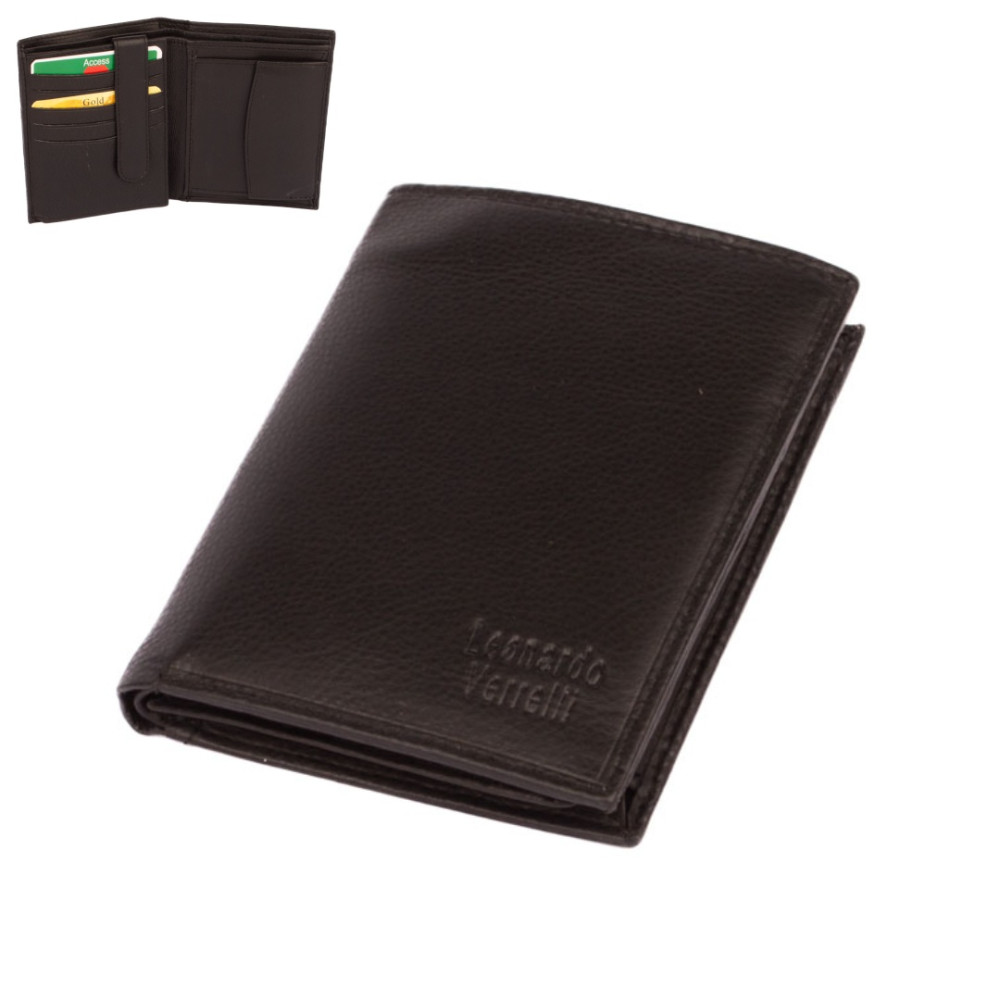 Kožená retro peněženka z pravé kůže. Peněženka má dostatek kapes na vaše karty, doklady i bankovky. Po jejím otevření jsou přístupné kapsy na karty, jedna je průhledná. Mincovník po pravé straně se uzavírá klopou s pevným drukem. V horní části peněženky jsou dvě velké kapsy na doklady. Do obou se české bankovky vejdou bez přeložení. Ve vnitřní klopě jsou zbývající kapsy na karty, některé jsou průhledné. Tajné věci ukryjete ve dvou vnitřních tenkých kapsách. Kožená retro peněženka je vyrobena z pravé kůže černé barvy a je značky Leonardo Verrelli. Peněženka je také vybavena RFID ochranou proti nechtěnému čtení karet.