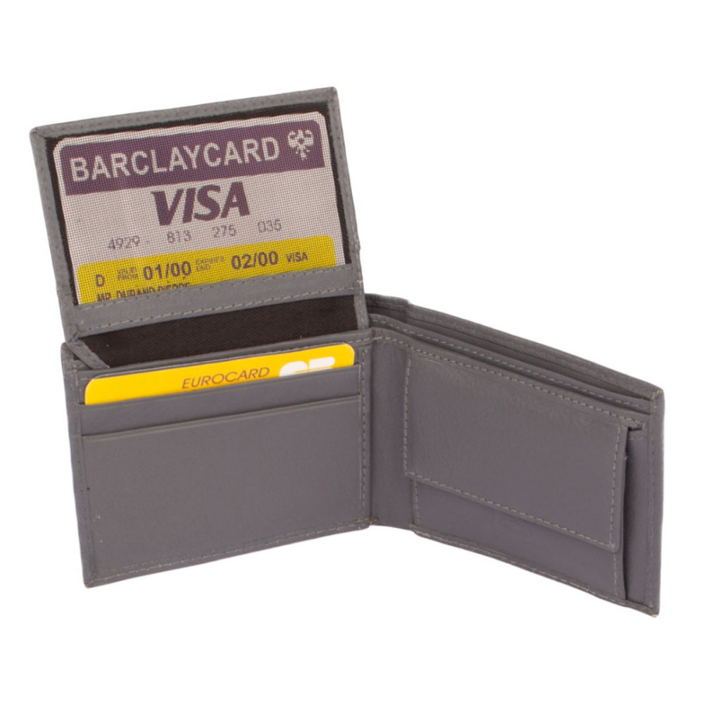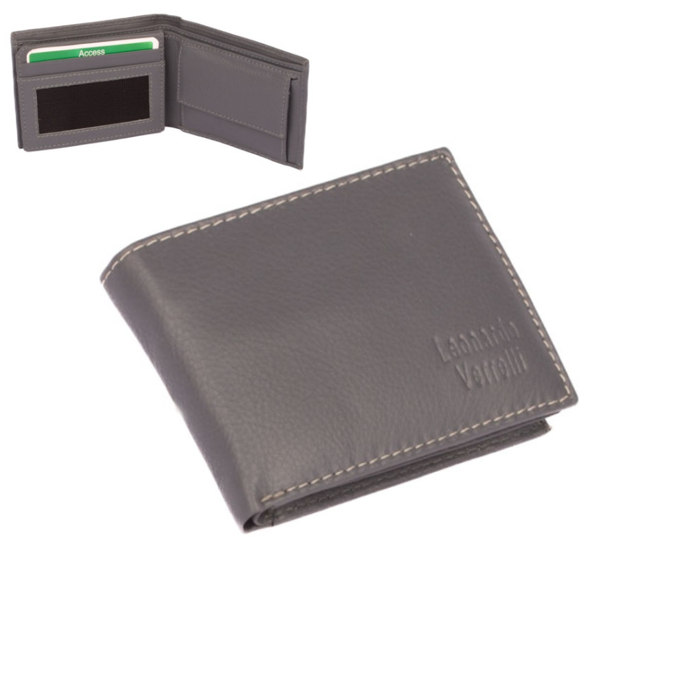 Malá pánská peněženka z pravé kůže. Peněženka má několik kapes na vaše karty i bankovky. Po jejím otevření jsou přístupné kapsy na karty, jedna je průhledná. Mincovník po pravé straně se uzavírá klopou s pevným drukem. V horní části peněženky jsou dvě velké kapsy na doklady. Do obou se české bankovky vejdou do hodnoty 500 Kč bez přeložení. Ve vnitřní klopě jsou zbývající kapsy na karty, jedna průhledná. Tajné věci ukryjete ve dvou vnitřních tenkých kapsách. Malá pánská peněženka je vyrobena z pravé kůže šedé barvy a je značky Leonardo Verrelli. Peněženka je dodávána bez dárkové krabičky. Peněženka je také vybavena RFID ochranou proti nechtěnému čtení karet.