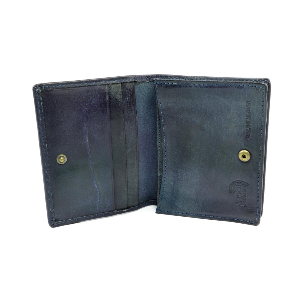 Malá peněženka pánská moderního vzhledu z pravé kůže v barevné kombinaci modré barvy z kolekce Buffalo wild. Malé peněženky pánské jsou ideální pro ty co nenosí moc peněz, a stačí jim pár kapes na karty a větší kapsa. Malá peněženka s velkými možnostmi využití.