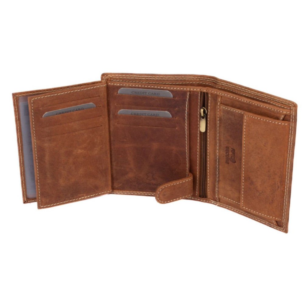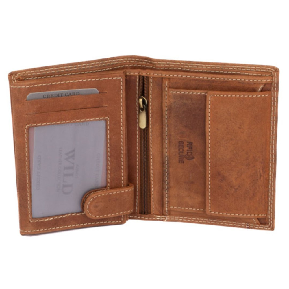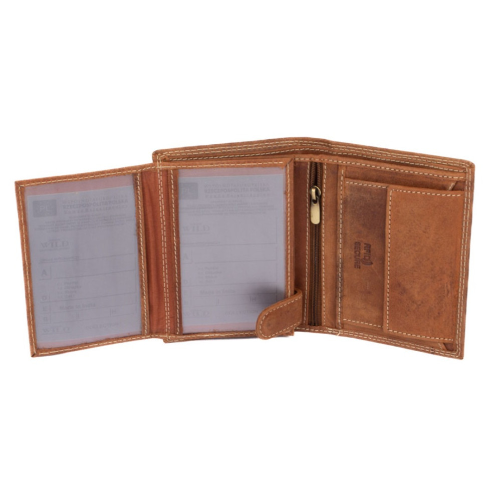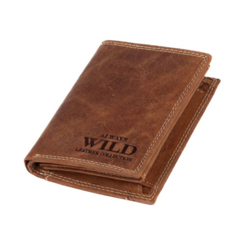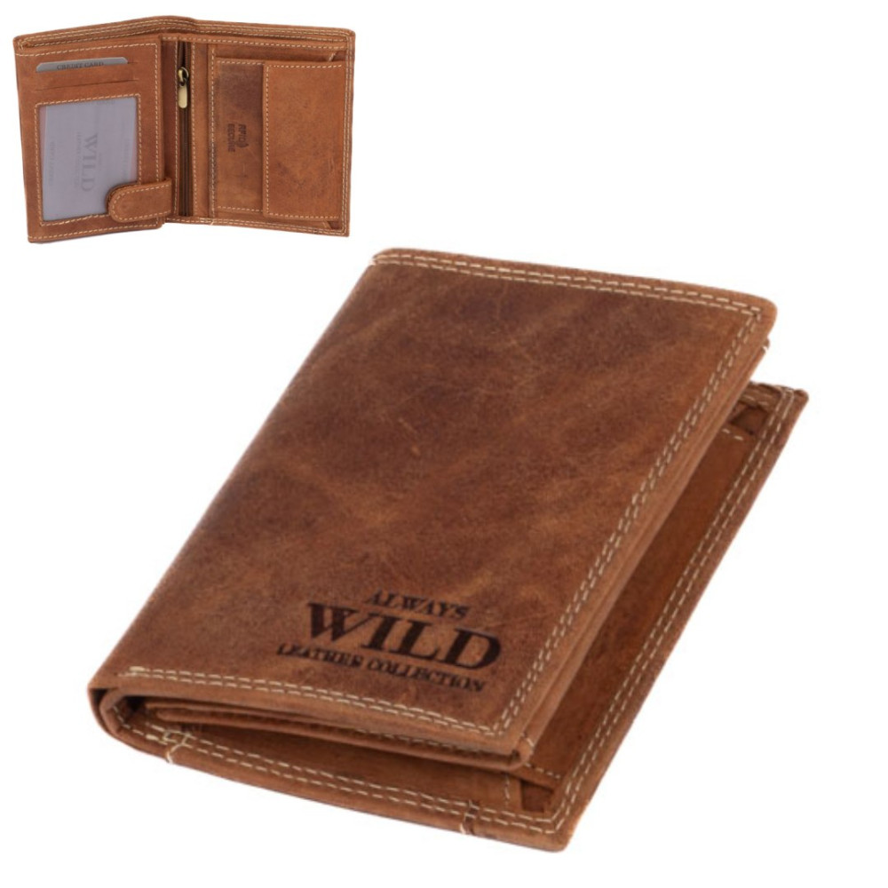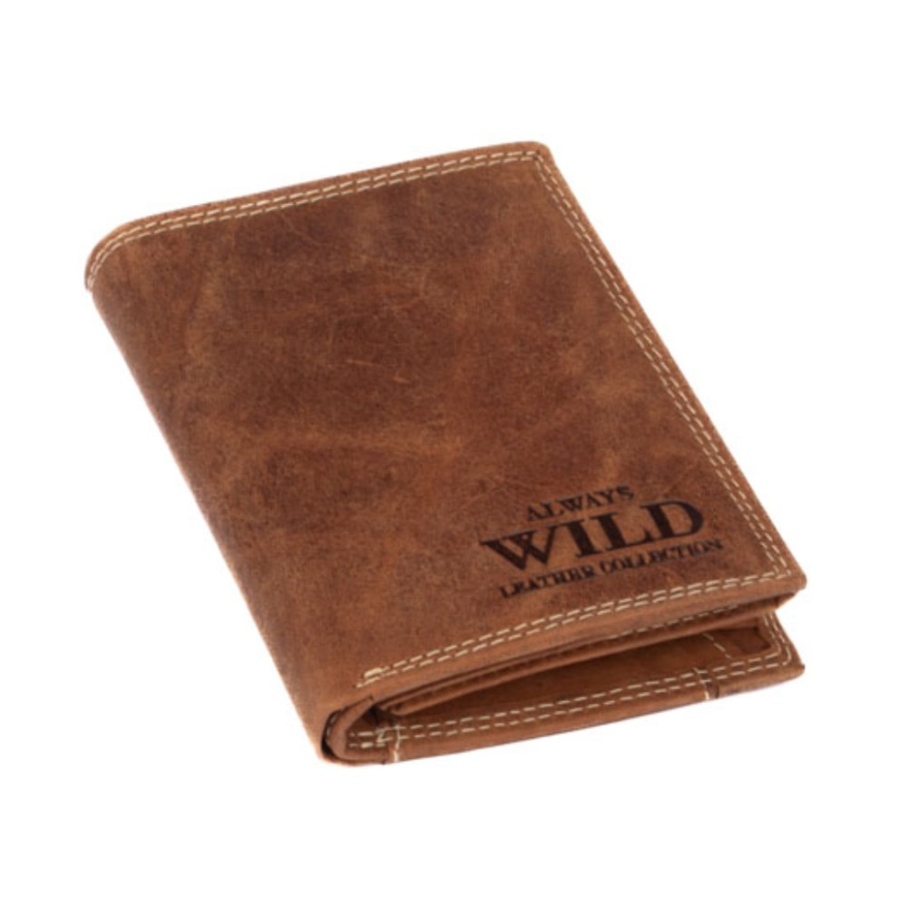 Pánská dokladovka kožená z kvalitní hovězí kůže. Neobvyklá barva , tradiční velikost a praktičnost. Do této peněženky se vejdou doklady, platební a jiné karty a samozřejmě peníze. Na zadní straně peněženky je kapsa na platební kartu. Peněženka je vyrobená z pravé světle hnědé kůže a je značky Always Wild. Praktické kožené dokladovky značky Always Wild jsou perfektním doplňkem moderního muže. Kožené pánské dokladovky získávají na oblibě. Jděte s dobou a pořiďte si také jednu. Pánská kožená etue dokladovka je oblíbeným i praktickým pomocníkem.