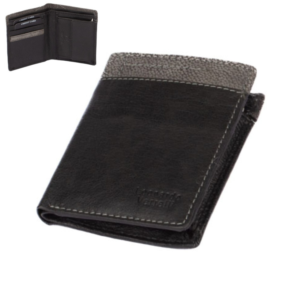 Pánská kožená peněženka je vyrobená z pravé kůže. Peněženka má klasický tvar, ale velmi netradiční prošívání na horní straně. Do peněženky uložíte vše potřebné, platební a jiné karty bankovky. Samozřejmostí je mincovník s klopou a pevným drukem. Pánská kožená peněženka je vyrobena z pravé kůže černé barvy, je značky Leonardo Verrelli a je dodávána v dárkové krabičce.