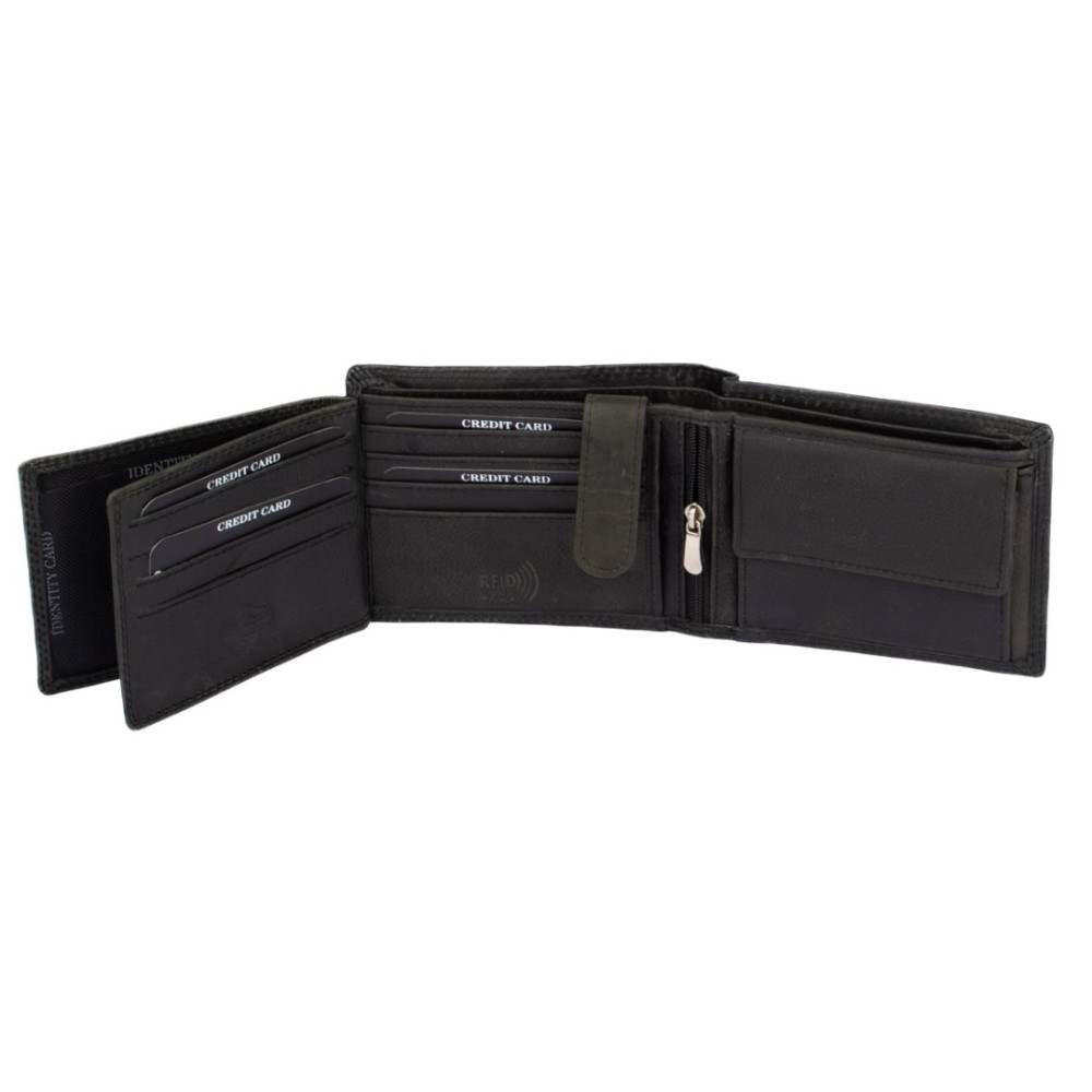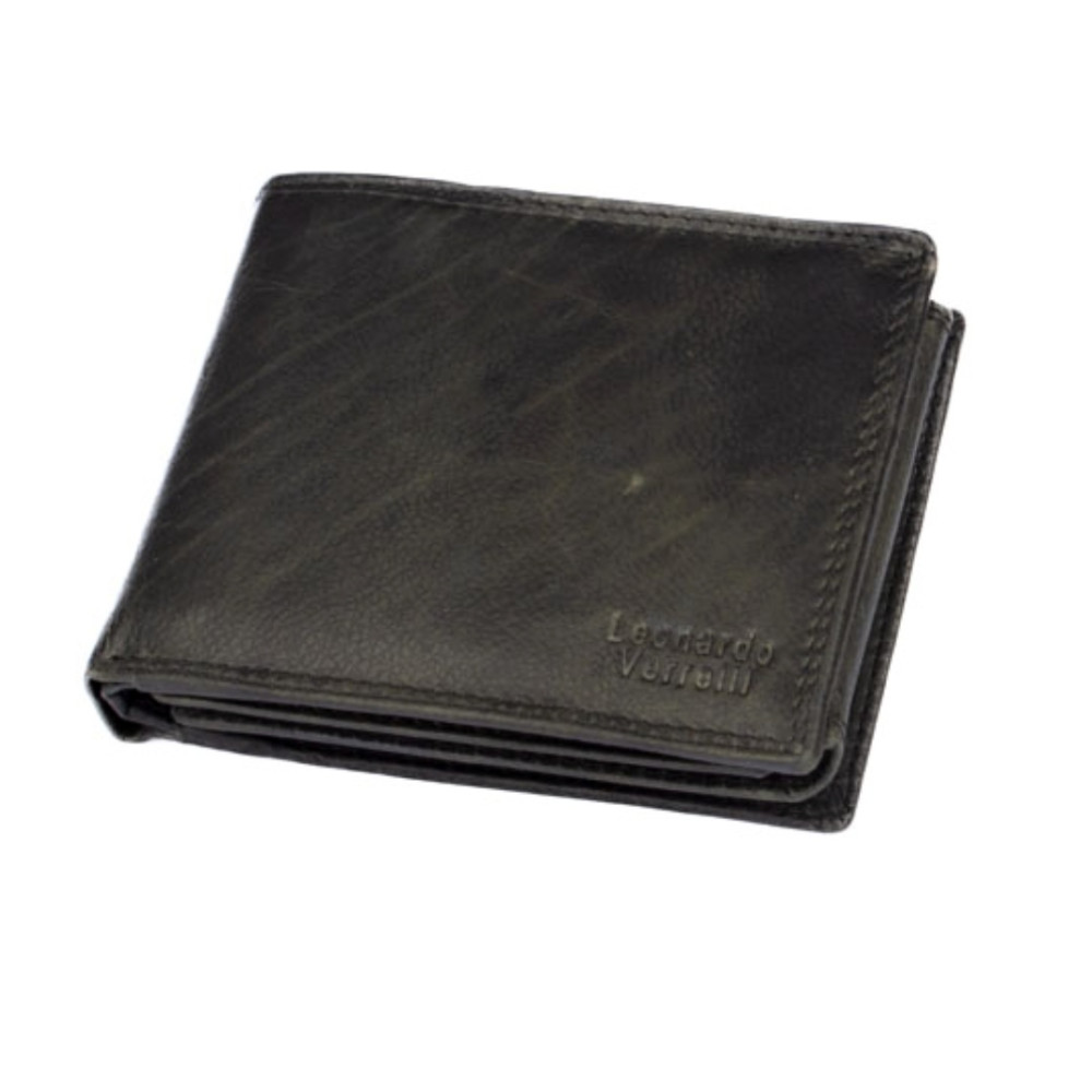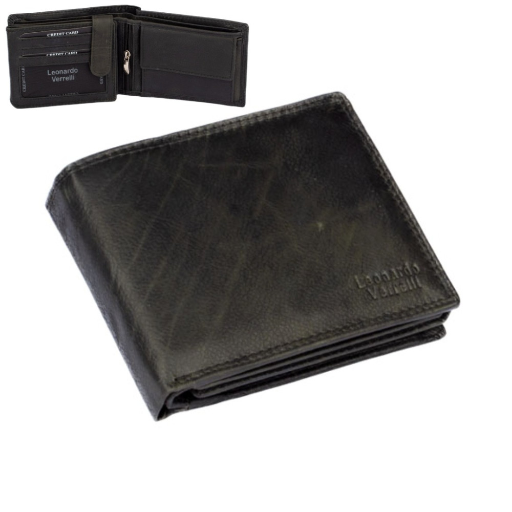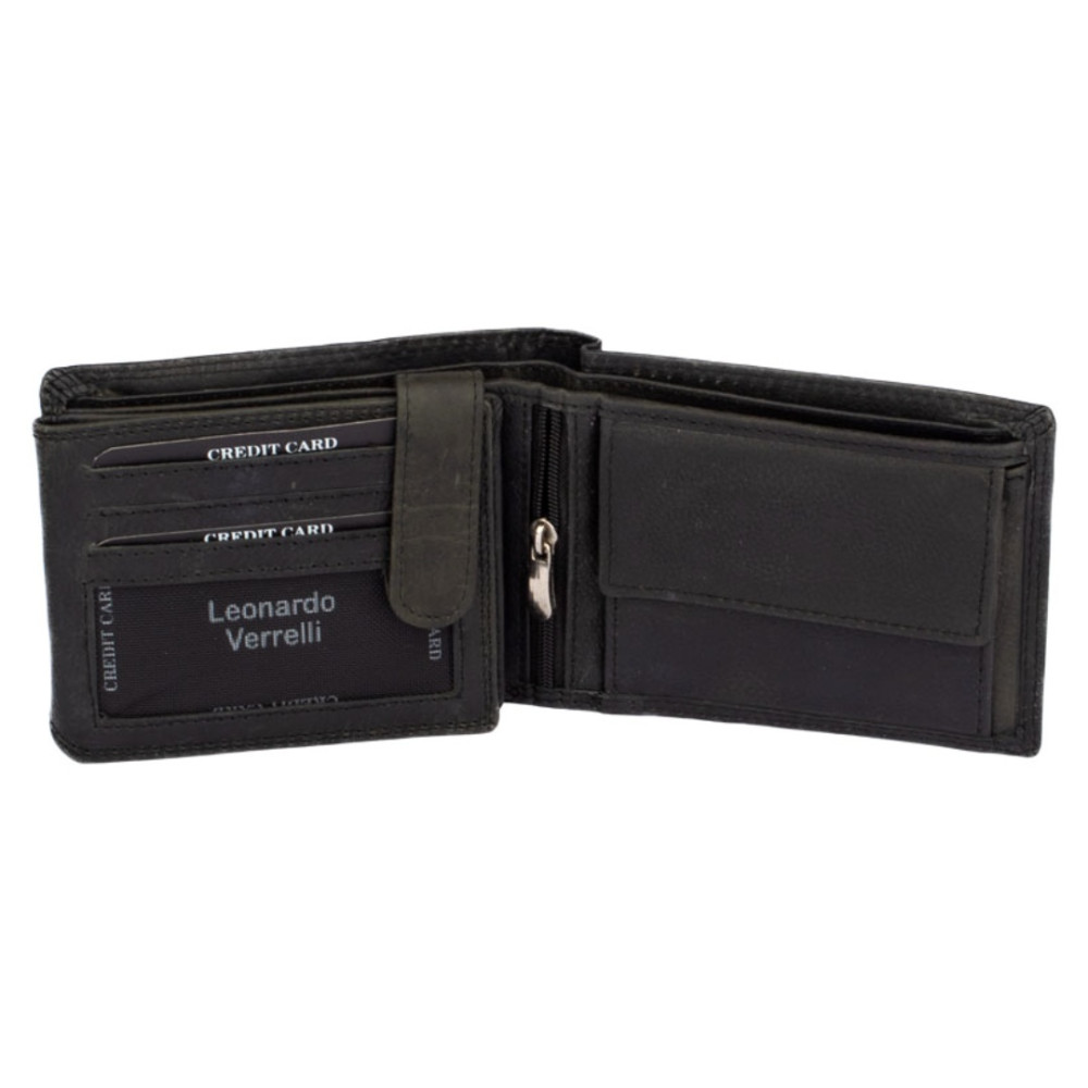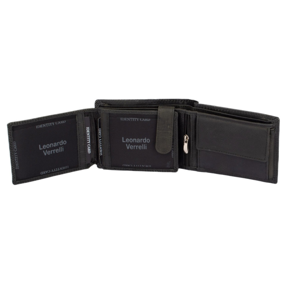 Velká pánská kožená peněženka šedo-černá je vyrobená z pravé kůže. Pánská peněženka má dostatek kapes na karty, dvě velké průhledné kapsy na doklady a dvě velké kapsy na bankovky. Uvnitř peněženky také najdete tenké kapsy, jedna z nich je na zip. Samozřejmostí je uzavíratelný mincovník s klopou a pevným drukem. Pánská kožená peněženka šedo-černá je vyrobena z pravé kůže, je značky Leonardo Verrelli a je v dárkové krabičce.