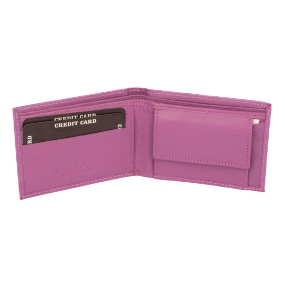 Pánská mini peněženka je vyrobena z pravé kůže pastelově fialové barvy, je z kolekce značky Dariya Bags ale nemá žádné logo. Peněženka je dodávána bez dárkové krabičky.