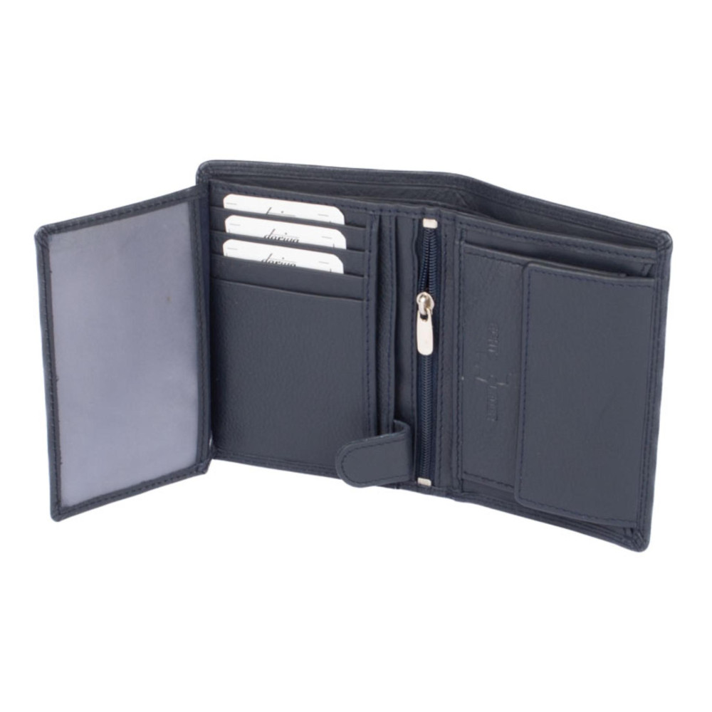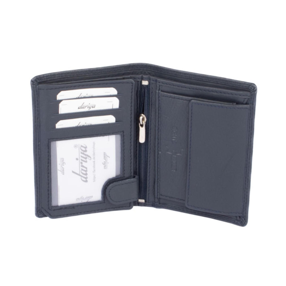 Pánská peněženka kožená modrá je vyrobená z měkké pravé kůže nappa neobvyklé šedo modré barvy. Peněženka kožená modrá má kapsy na karty a velké kapsy na bankovky. Samozřejmostí pánské peněženky kožené je mincovník uzavíratelný klopou pevným drukem. Pánská peněženka kožená modrá je značky Dariya bags. Peněženka je dodávána bez dárkové krabičky.