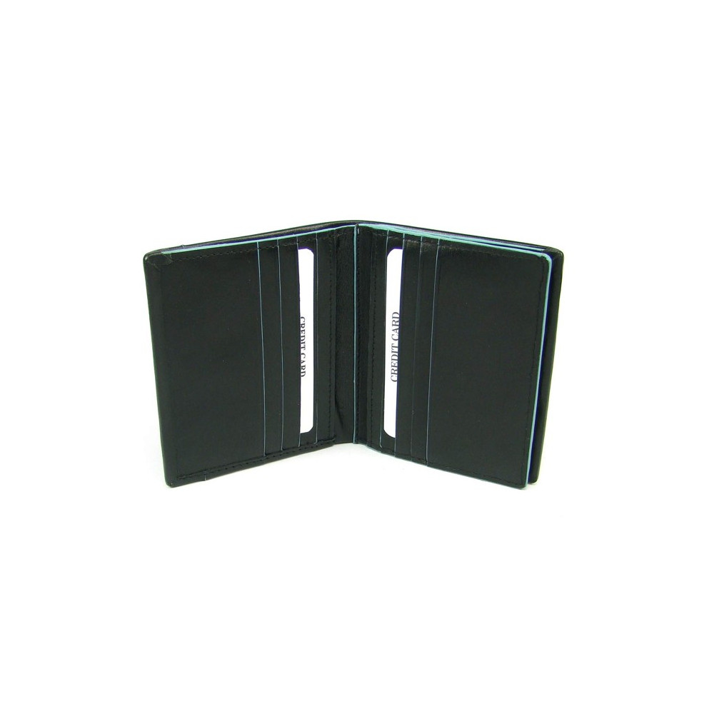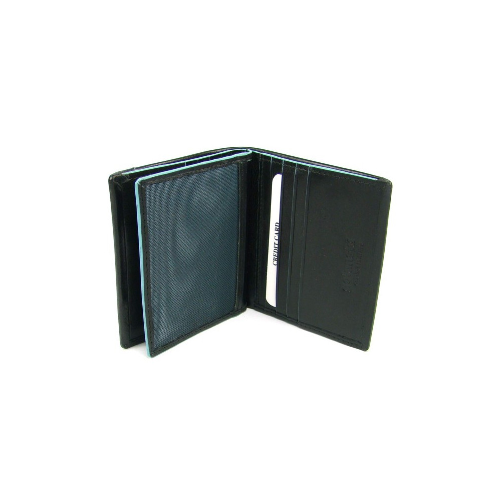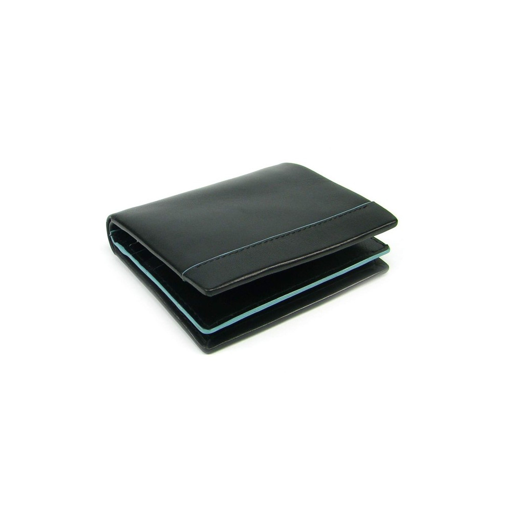 Malá pánská peněženka luxusní vyrobená z pravé kůže černé barvy. Peněženka je prošívaná světle modrou nití, které peněžence dává luxusní vzhled. I přes malý rozměr peněženky se do ní vejde vše potřebné – platební karty, bankovky i doklady. Peněženka je značky Golunski.