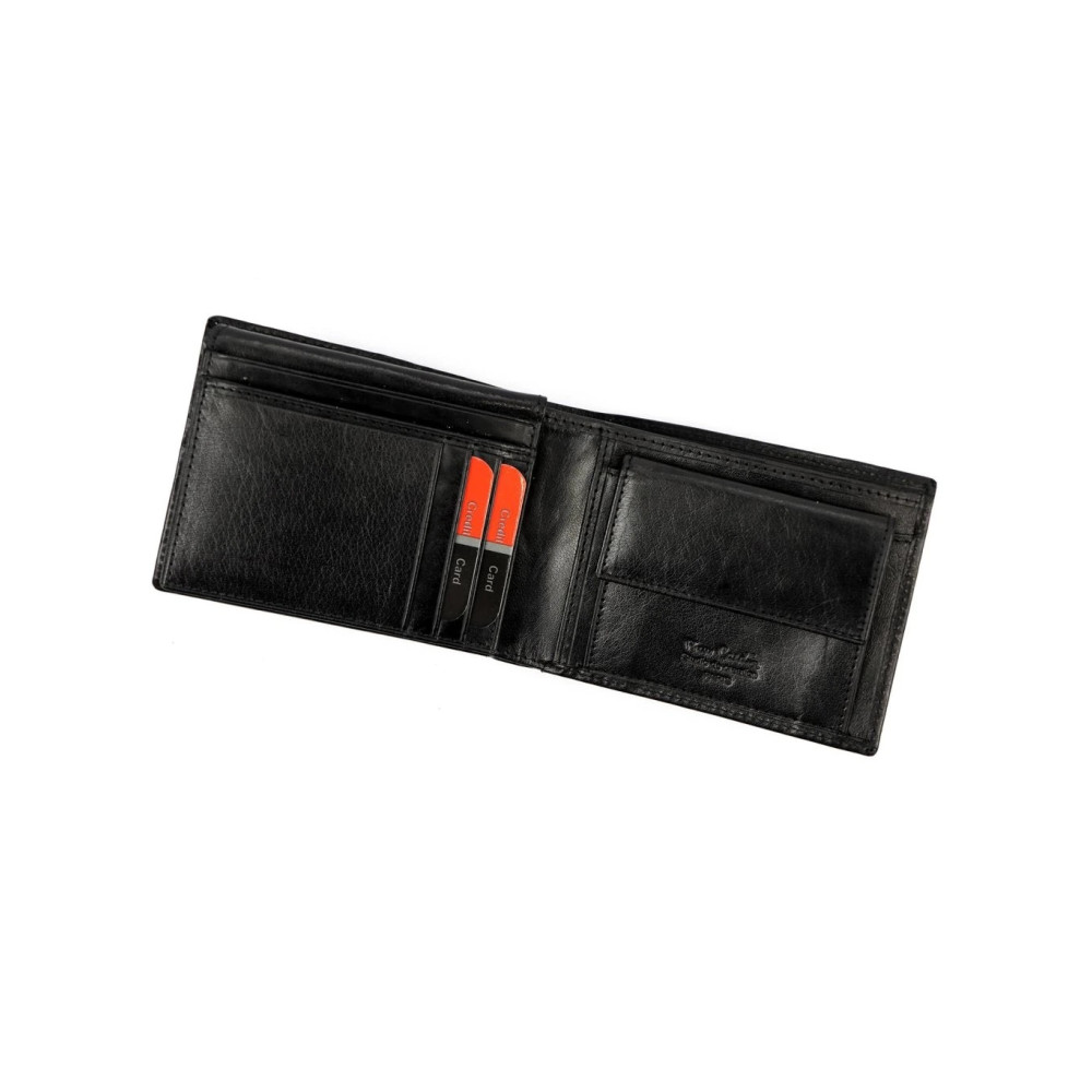 Pánská peněženka moderního vzhledu z pravé velmi jemné kůže černé barvé. Malé pánské peněženky jsou ideální řešení pro ty co nenosí moc peněz, stačí jim pár kapes na karty a mincovník. Peněženka je vyrobena z pravé kůže a je značky Pierre Cardin.