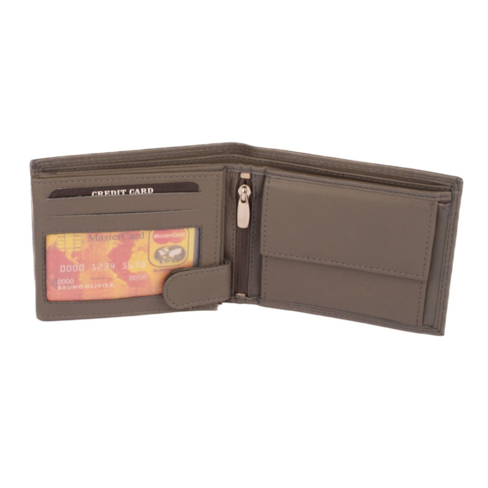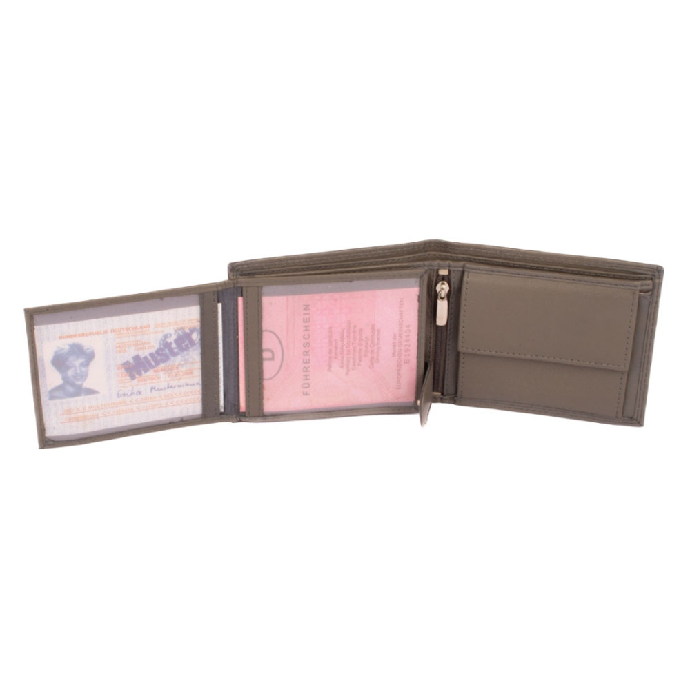 Pánská peněženka šedá do které se vejdou i nejen vaše peníze, karty ale i doklady. Po otevření peněženky máte ihned přístupné kapsy na karty, jednu z nich průhlednou. Po pravé straně je kapsa na vaše mince, aby necinkaly v kapse. Mincovník se uzavírá klopou s pevným drukem. Nad kapsami jsou dvě velké kapsy na bankovky. Vejdou se všechny české, bez přehnutí.