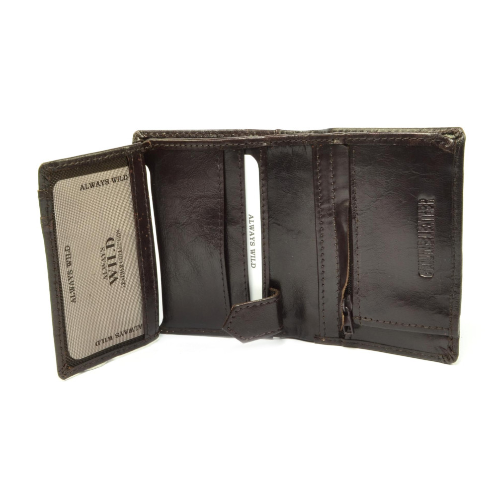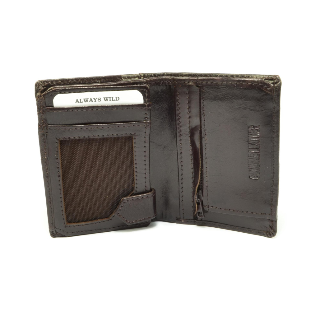 Pánská kožená peněženka hnědé barvy je klasickým vzorem malé ale praktické peněženky. V peněžence jsou kapsy na bankovky, na platební a jiné karty. Mincovník je klasický, se zavíráním na zip. Peněženka je vyrobená z pravé velmi jemné hnědé kůže a je značky Always Wild.