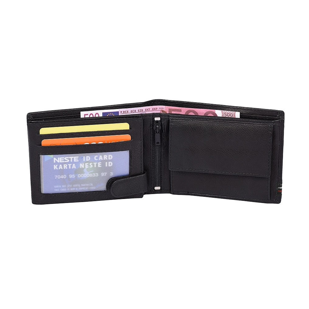 Kožená pánská peněženka je vyrobená z pravé kůže černé barvy. V kožené peněžence najdete vše obvyklé – kapsy na bankovky, karty i doklady, některé z nich jsou průhledné. Samozřejmostí je mincovník s klopou a pevným drukem. Peněženka pánská je vyrobena z pravé kůže tmavě hnědé barvy a je z kožené kolekce Always Wild.