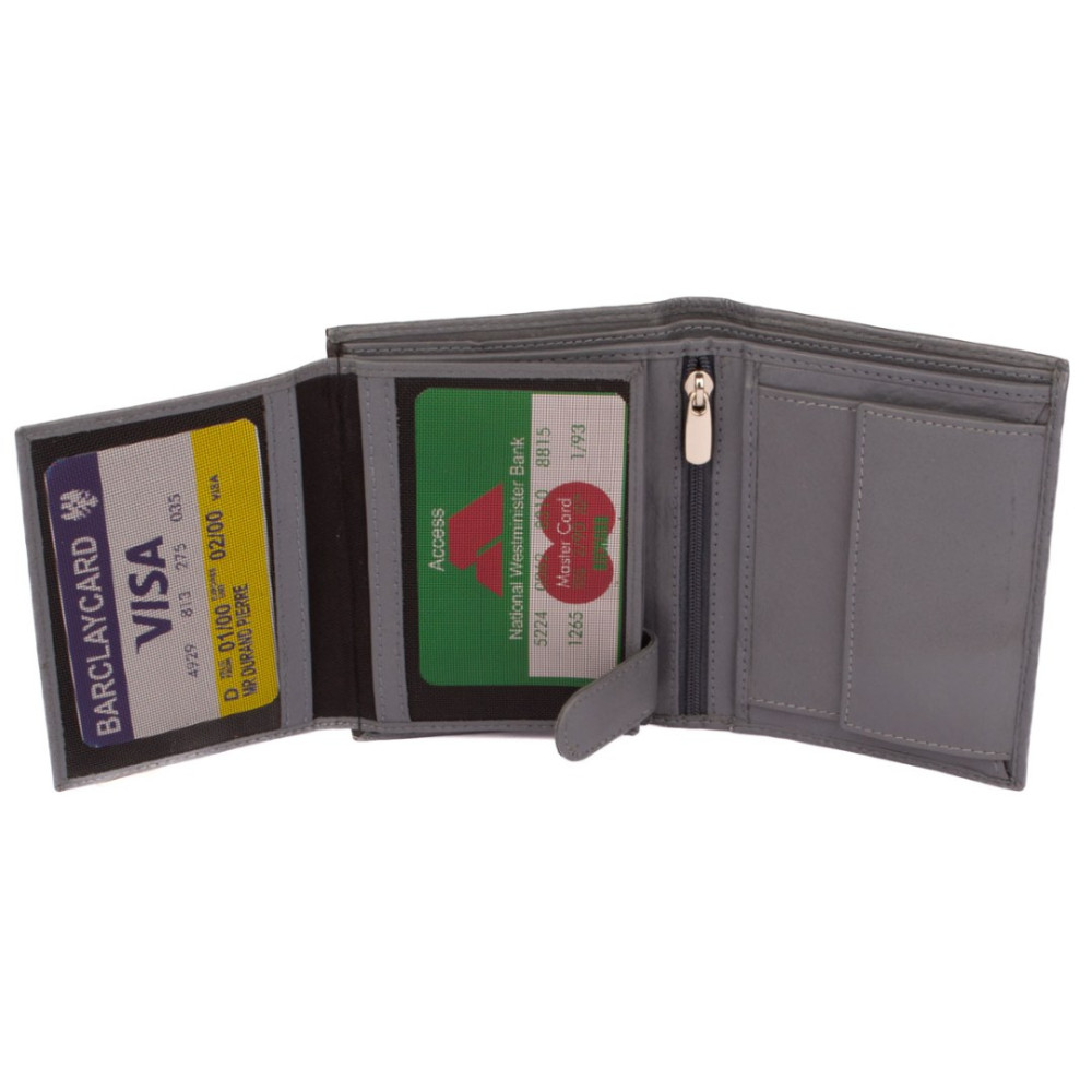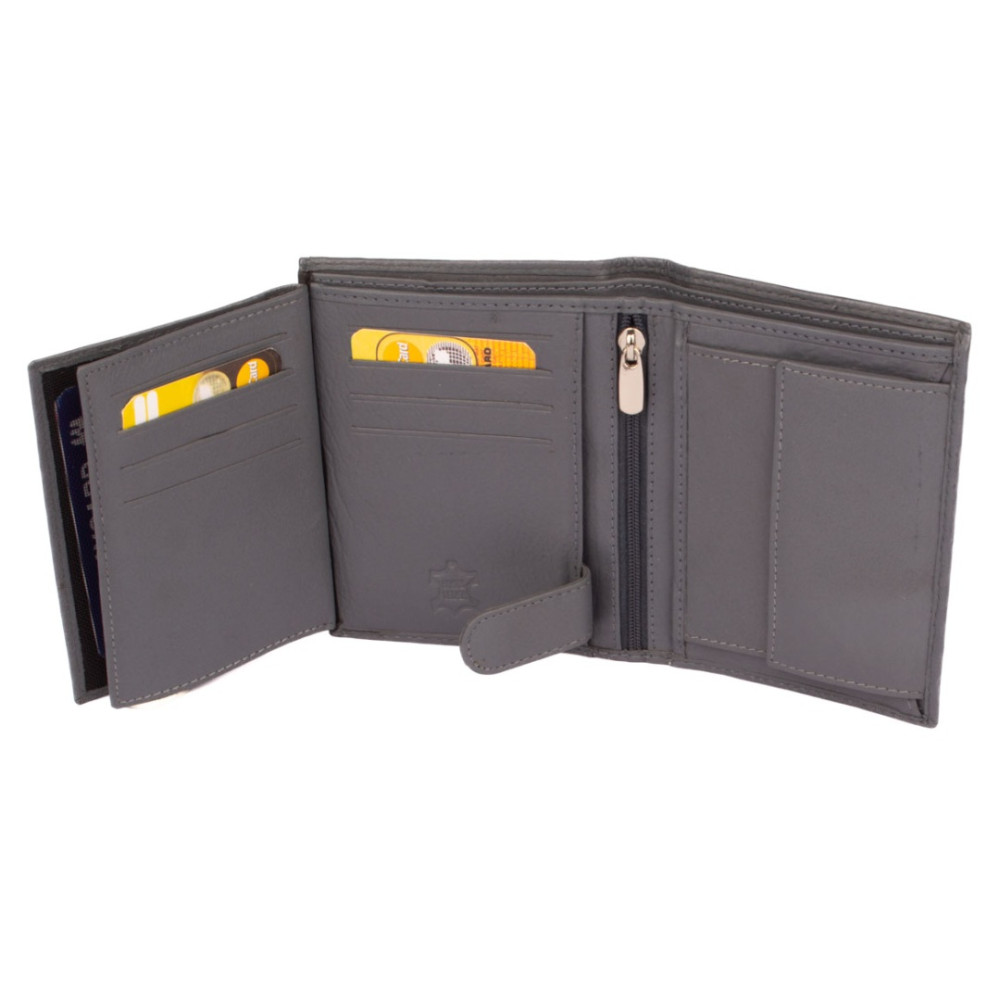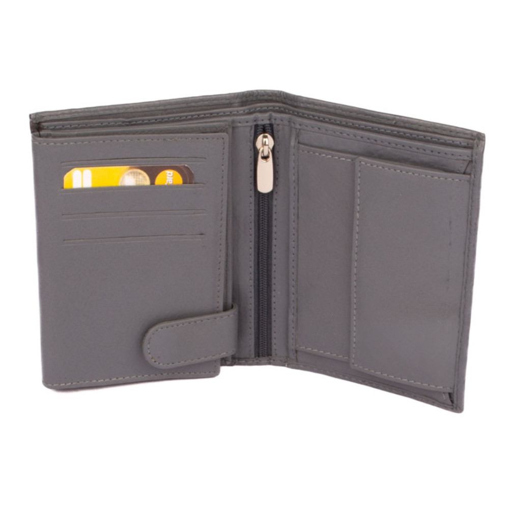 Peněženka kožená pánská světlá z pravé kůže. Peněženka má dostatek kapes na vaše karty, doklady i bankovky. Po jejím otevření jsou přístupné kapsy na karty, jedna je průhledná. Mincovník po pravé straně se uzavírá klopou s pevným drukem. Uvnitř peněženky je kapsa na zip. V horní části peněženky jsou dvě velké kapsy na doklady. Do obou se české bankovky vejdou bez přeložení. Ve vnitřní klopě jsou zbývající kapsy na karty, některé jsou průhledné. Tajné věci ukryjete ve dvou vnitřních tenkých kapsách. Peněženka kožená pánská světlá je vyrobena z pravé kůže šedé barvy a je značky Leonardo Verrelli. Peněženka je také vybavena RFID ochranou proti nechtěnému čtení karet.
