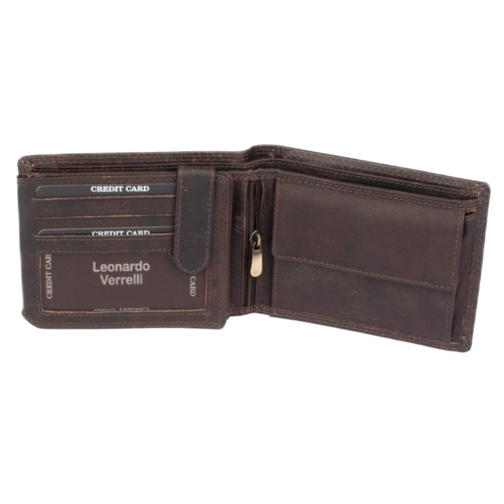 Krásná hnědá peněženka luxusní pánská vyrobená z pravé kůže. V peněžence je dostatek kapes pro platební, slevové a jiné karty. Samozřejmostí jsou dvě velké kapsy na bankovky. Mincovník se uzavírá klopou s pevným drukem. Luxusní pánská peněženka je vyrobena z pravé kůže hnědé barvy. Peněženka je zabalena v dárkové krabičce.