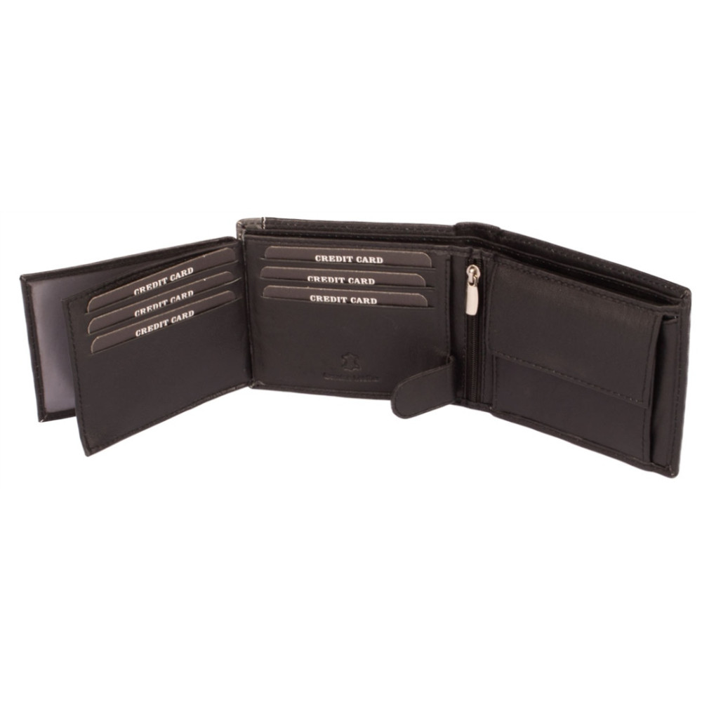Krásná peněženka pánská kožená velká z pravé kůže měkoučké na dotek. Peněženka má vše na co jste u peněženky zvyklí – kapsy na bankovky, karty a doklady. Samozřejmostí je mincovník uzavíratelný klopou s pevným drukem. Peněženka pánská kožená velká je vyrobena z pravé kůže černé barvy a je z kolekce značky Dariya Bags. Pánské značkové peněženky Dariya Bags se stanou vaším oblíbeným doplňkem.