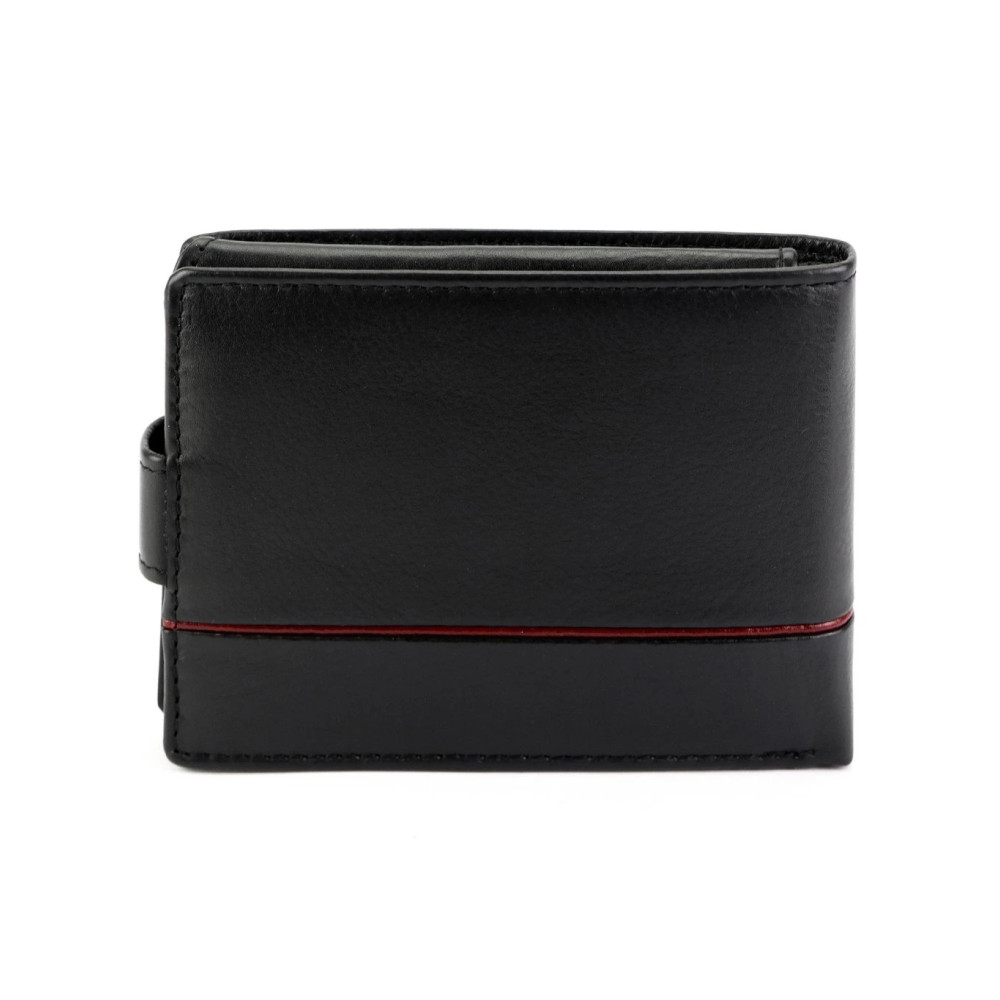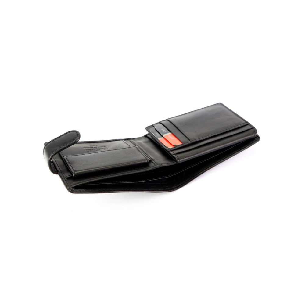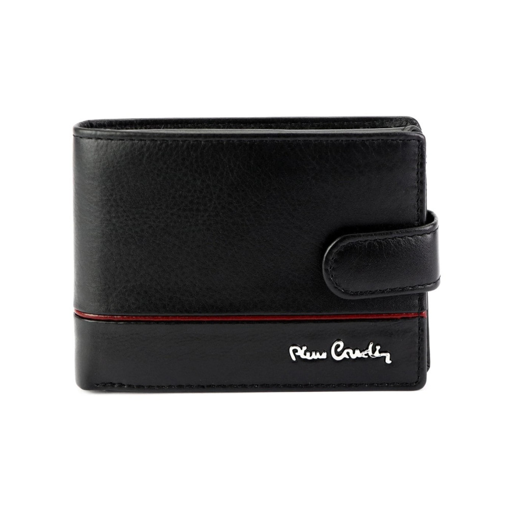 Pánská peněženka moderního vzhledu z pravé velmi jemné kůže v barvě černé. Peněženka se zapíná přezkou na cvoček. Peněženka je vyrobena z pravé kůže a je značky Pierre Cardin.