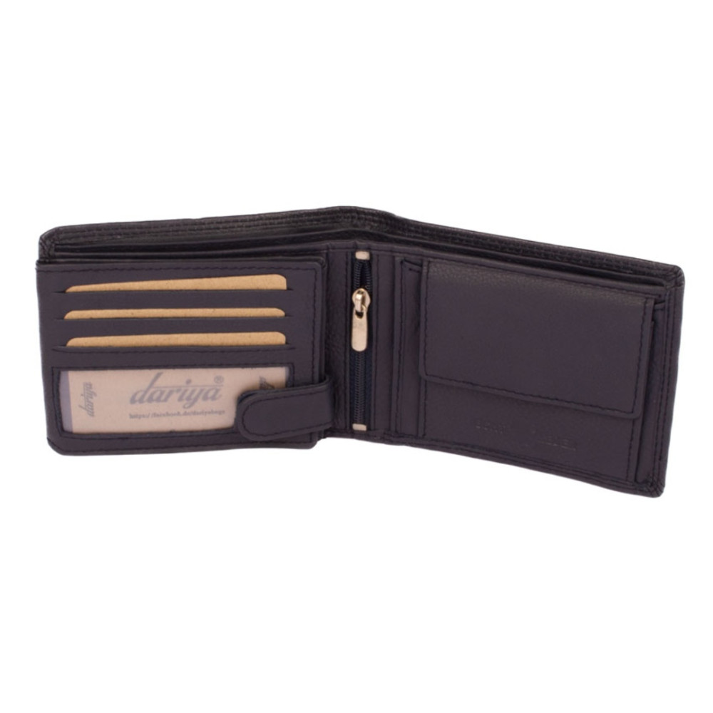 Kožená pánská peněženka tmavá je vyrobena z pravé kůže tmavě modré barvy, je z kolekce značky Dariya Bags ale nemá žádné logo. Peněženka je dodávána bez dárkové krabičky. Peněženka je vybavena ochranou proti čtení karet RFID technologií. Vaše karty jsou tedy v bezpečí.