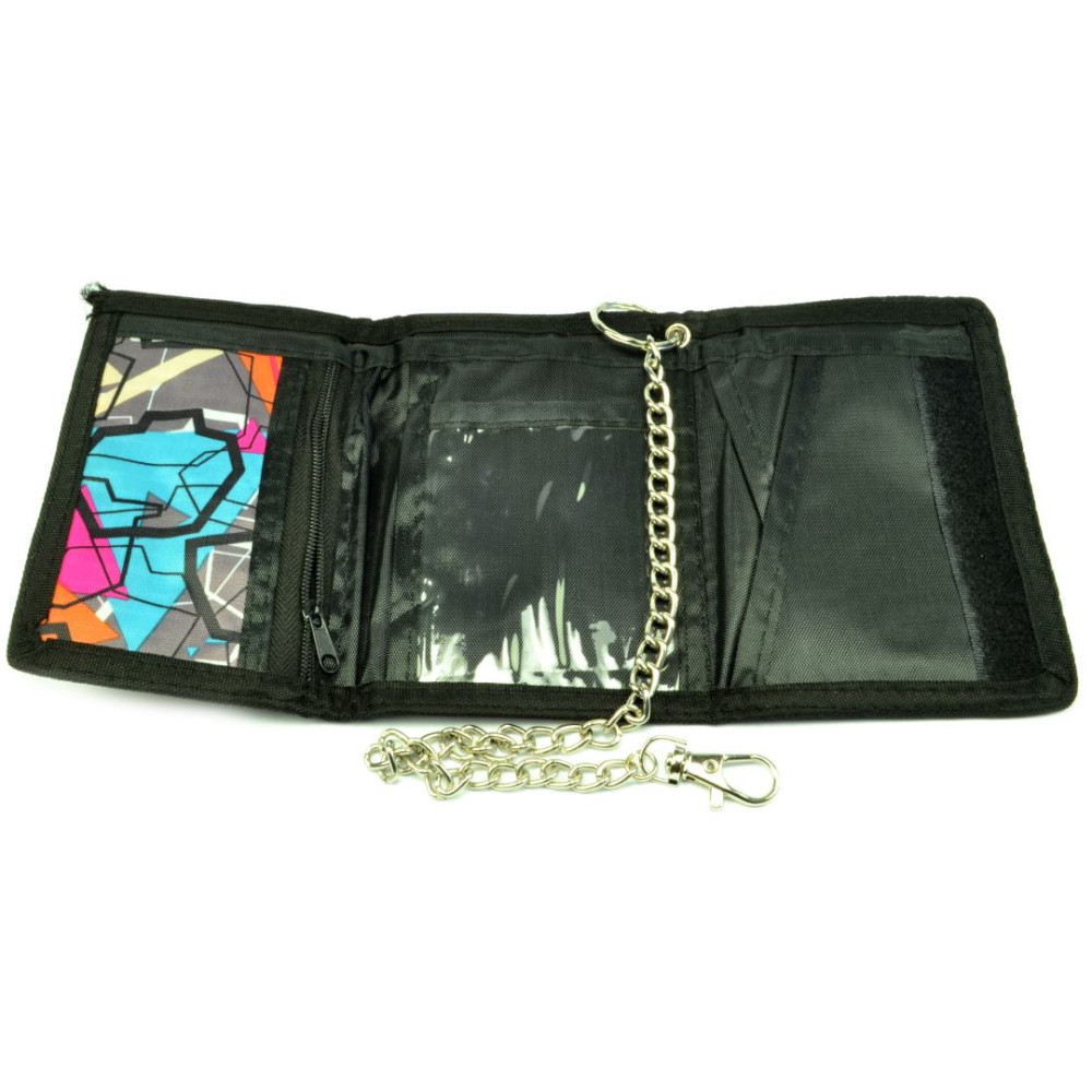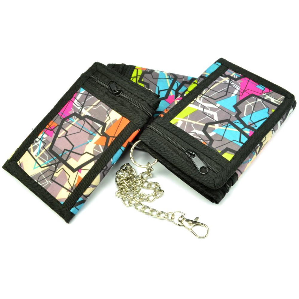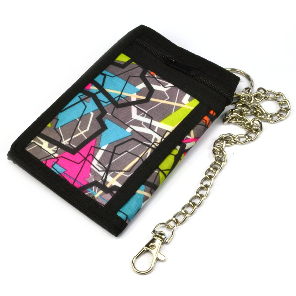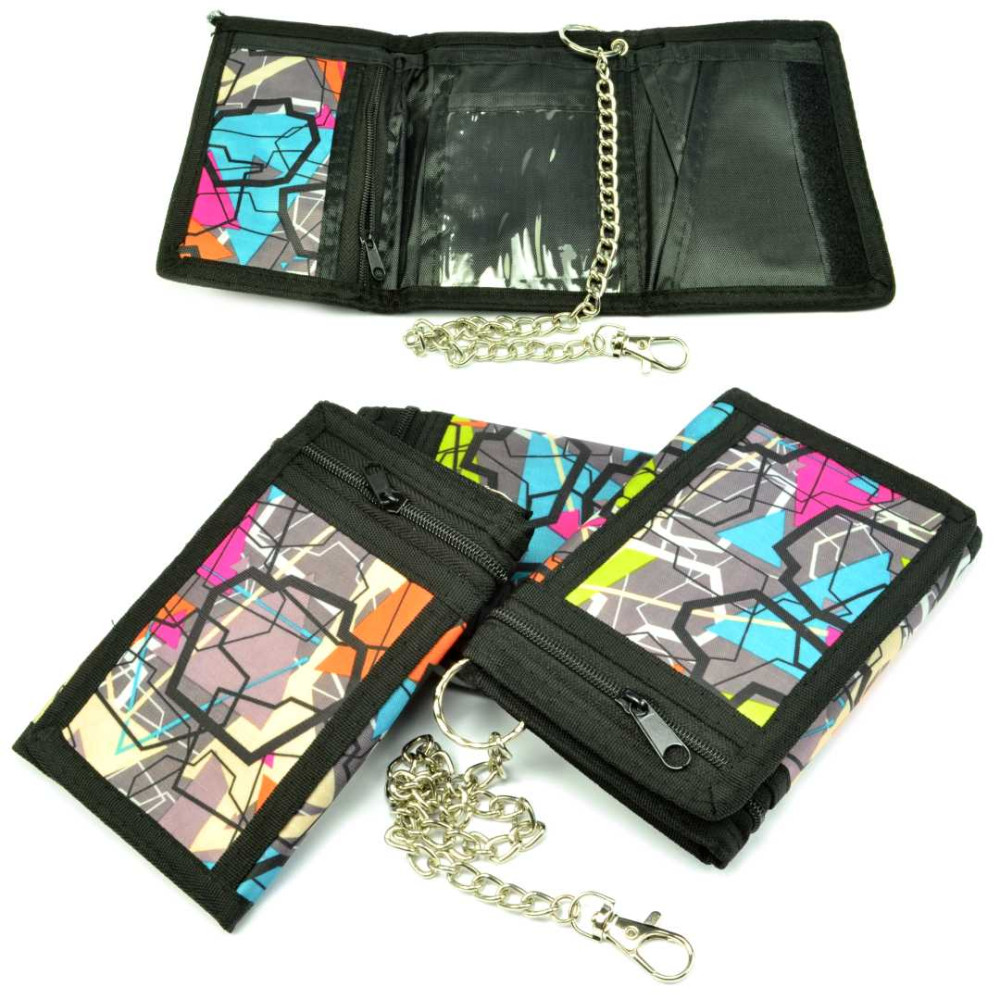 Nejen ke sportu, ale i ke každodennímu užívání se hodí dámská sportovní peněženka na suchý zip se zavíráním na suchý zip. Na zadní straně peněženky je kromě kapsy na karty také velká kapsa na zip, přístupná bez nutnosti otevřít celou peněženku. Uvnitř peněženky je kapsa na bankovky. Do peněženky dáte také pohodlně několik platebních karet do kapes na boku peněženky a určitě najdete využití i pro průhlednou kapsu. Mincovník je samozřejmostí a zavírá se zipem. V peněžence je také řetízek s karabinou, který lze sundat. Každá peněženka má trošku jiný motiv. Materiál peněženky je 100% polyester.