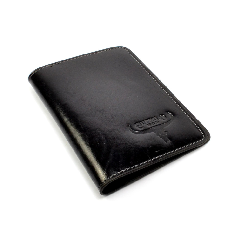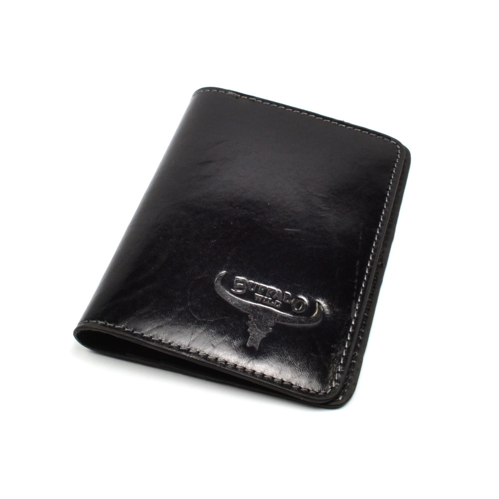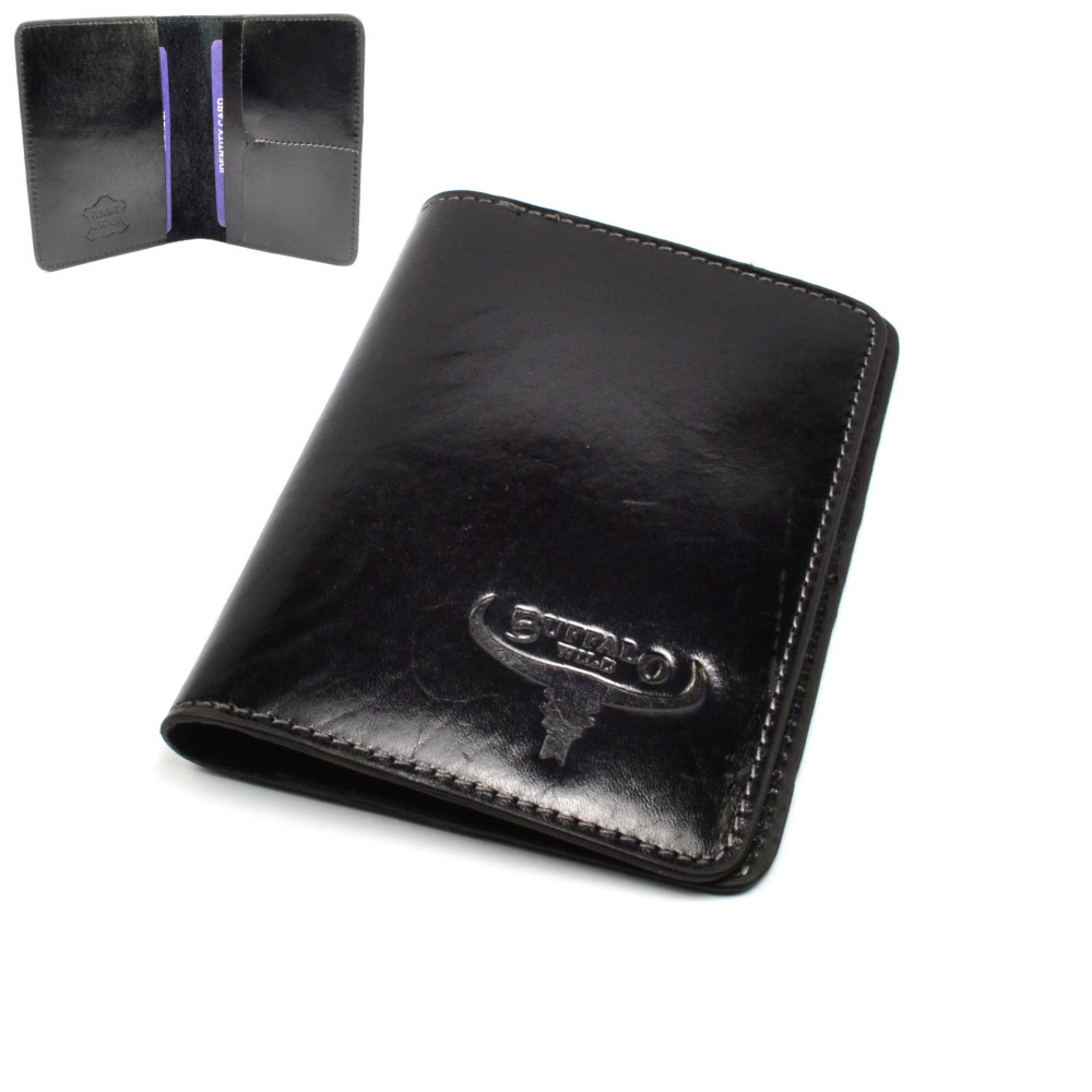 Kožené pouzdro na doklady – dokladovka. Pouzdro má několik kapes na doklady a platební karty na boku pouzdra. Pouzdro má černou barvu a je vyrobené z pravé kůže. Pouzdro je značky Buffalo Wild.