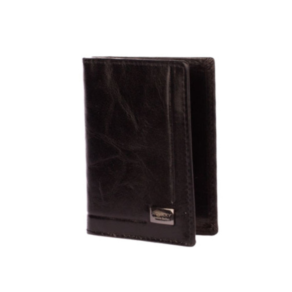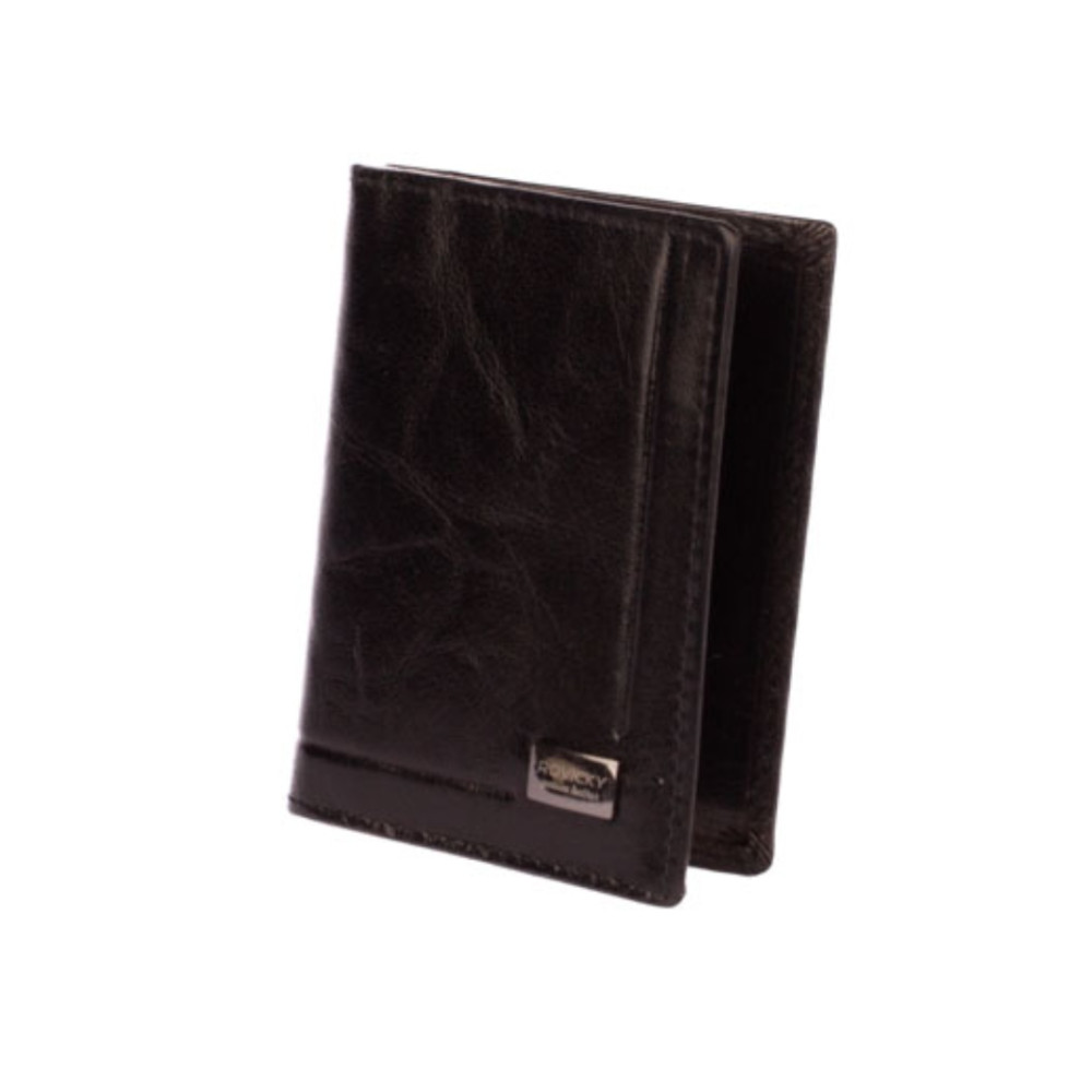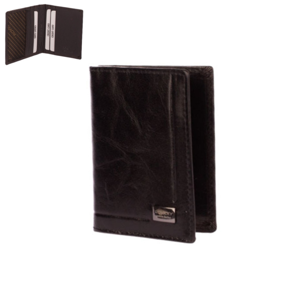 Luxusní kožená dokladovka - pouzdro na doklady a karty. Pouzdro má průhlednou kapsu na doklady a další kapsy platební karty na boku pouzdra. Pouzdro má černou barvu a je vyrobené z pravé kůže. Dokladovka je značky Rovicky.