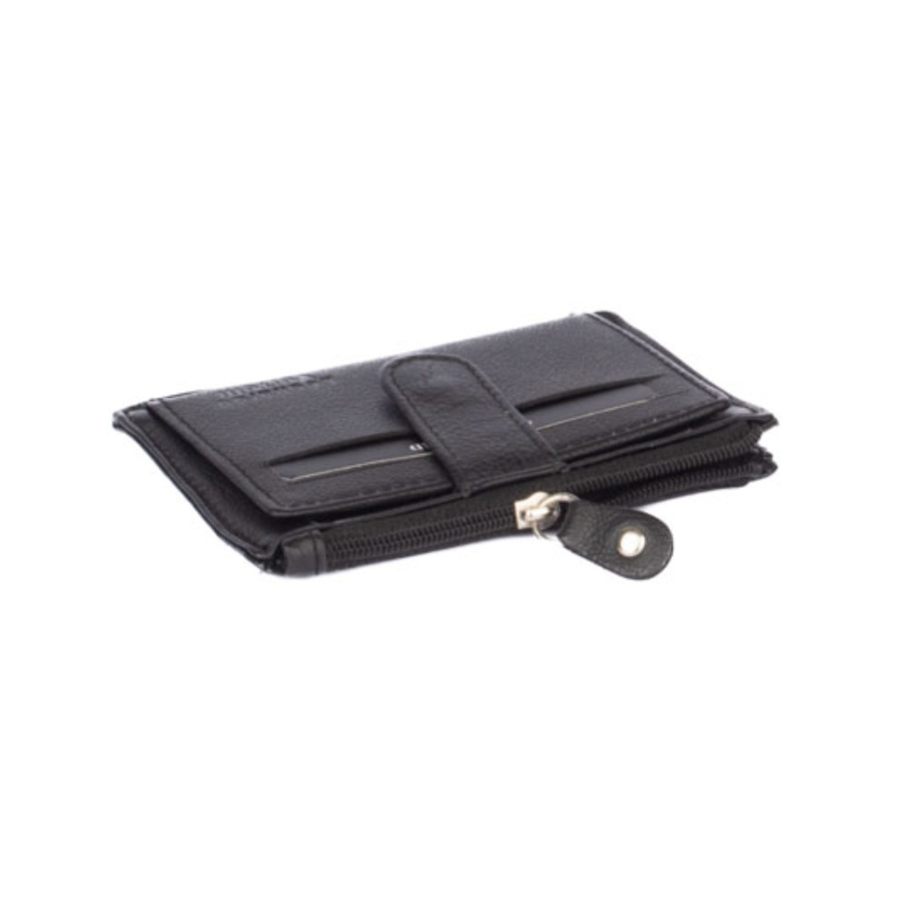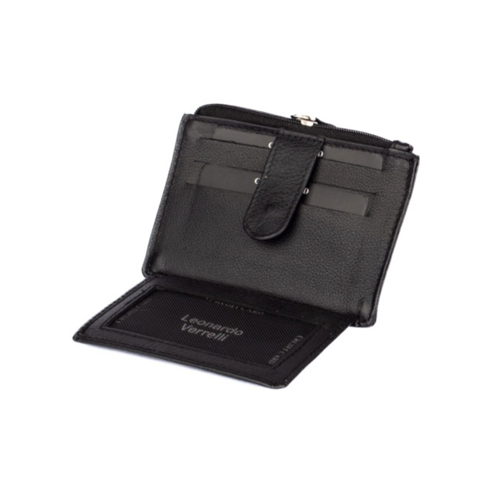 Kožené černé pouzdro na karty se spoustou kapes je neobvykle, ale velmi prakticky řešeno. Prošití na vnější i vnitřní straně zajišťuje dobrou stabilitu a odolnost. Díky plochému provedení lze kožené pouzdro kamkoli uložit. Vejde se do každé kapsy u kalhot, saka i kabelky a přesto nabízí dostatek prostoru pro uložení cenností v bezpečí a na cestách. Pouzdro je vybaveno ochranou RFID. Tento blokátor je mezivrstva, která je integrovaná do vnitřní části pouzdra a zajišťuje, že neoprávněné osoby nemají přístup k citlivým údajům ani je nemohou číst. Z jedné strany pouzdra jsou přístupné kapsy na karty ihned, bez nutnosti cokoli otevírat. Z druhé strany jsou karty zabezpečeny přezkou s pevným drukem. Po odepnutí přezky se vyklopí klopa, ve které jsou další kapsy na karty, jedna z nich je průhledná. Na horní straně pouzdra je kapsa s zipem a velkým jezdcem pro pohodlné otevírání kapsičky, kterou můžete využít například na mince. Kožené černé pouzdro na karty je vyrobeno z pravé kůže ve formátu na šířku a má mírně zjizvený povrch. Tento organizér je nejen velmi praktický, ale je také skvělým dárkem pro vaše blízké. Pouzdro je dodáváno bez dárkové krabičky.