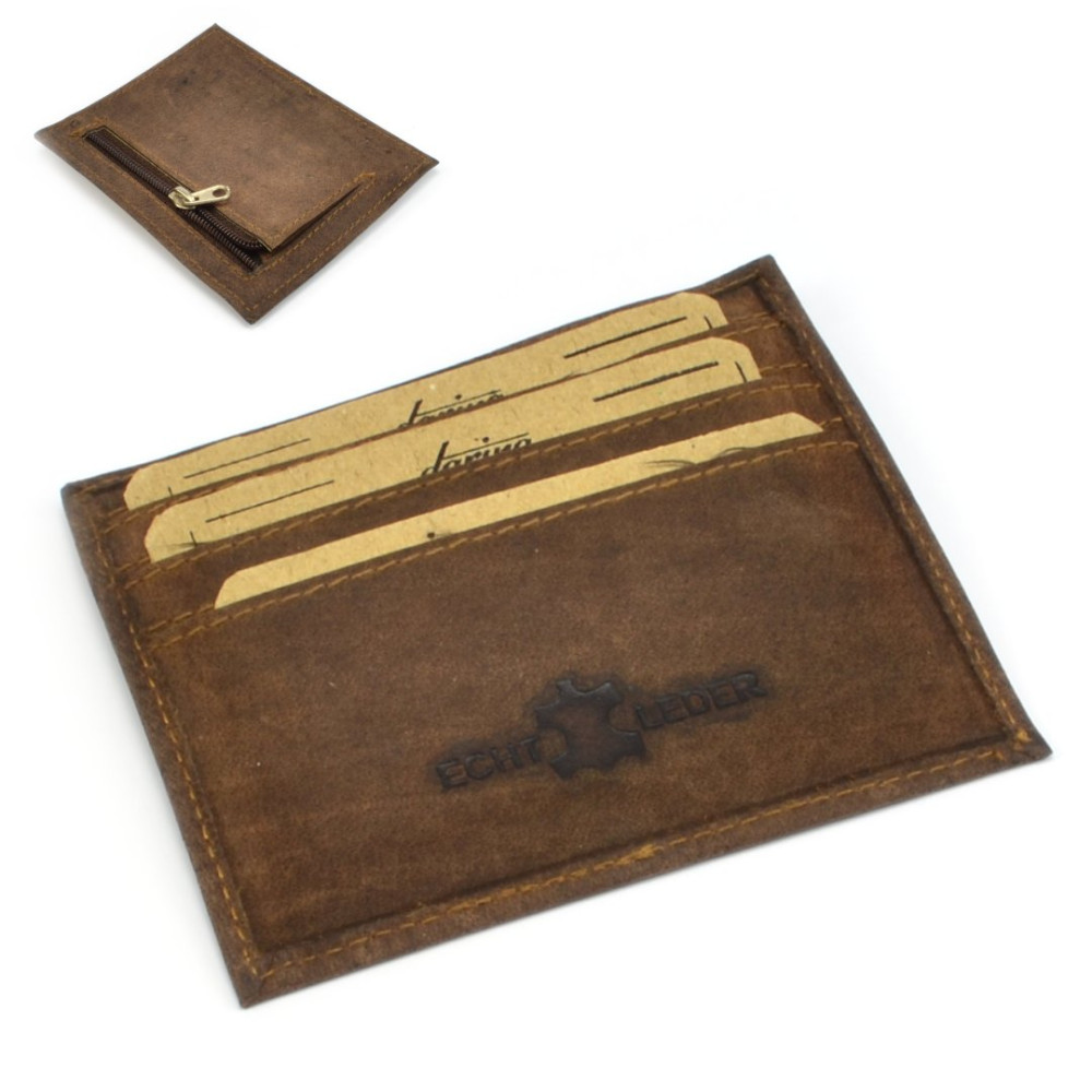 Luxusní malé pouzdro na karty z přírodní kůže v tmavě hnědé barvě. Pokud nosíte jen platební karty a pár mincí, je toto pouzdro přesně pro vás. Na zadní straně pouzdra je kapsa ni zip.