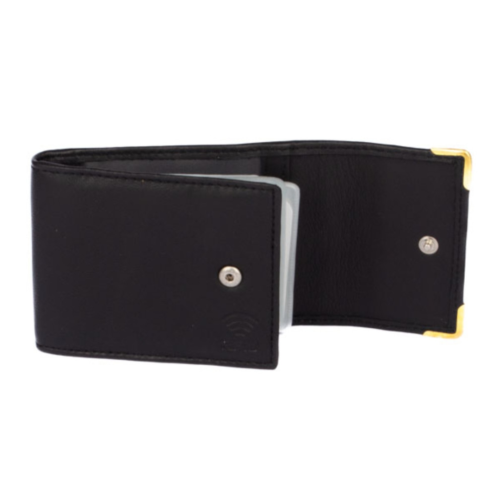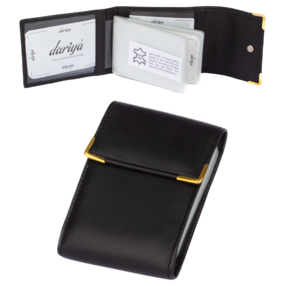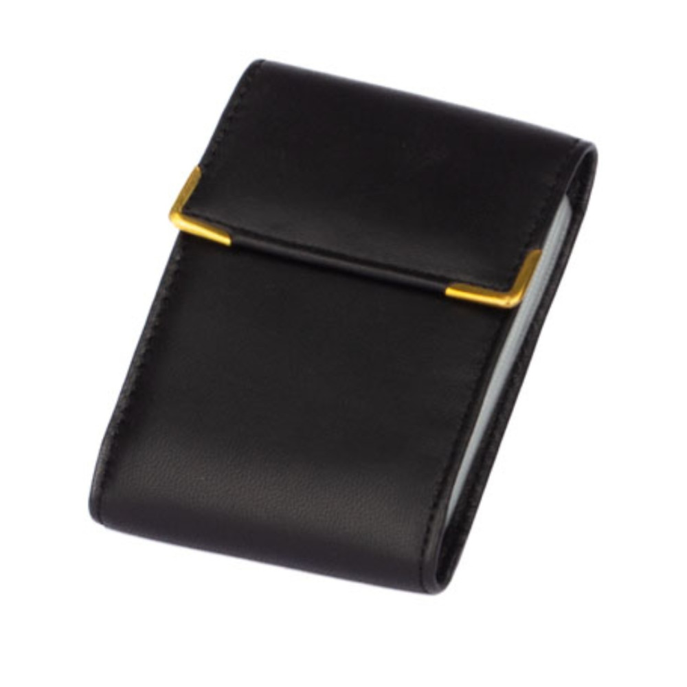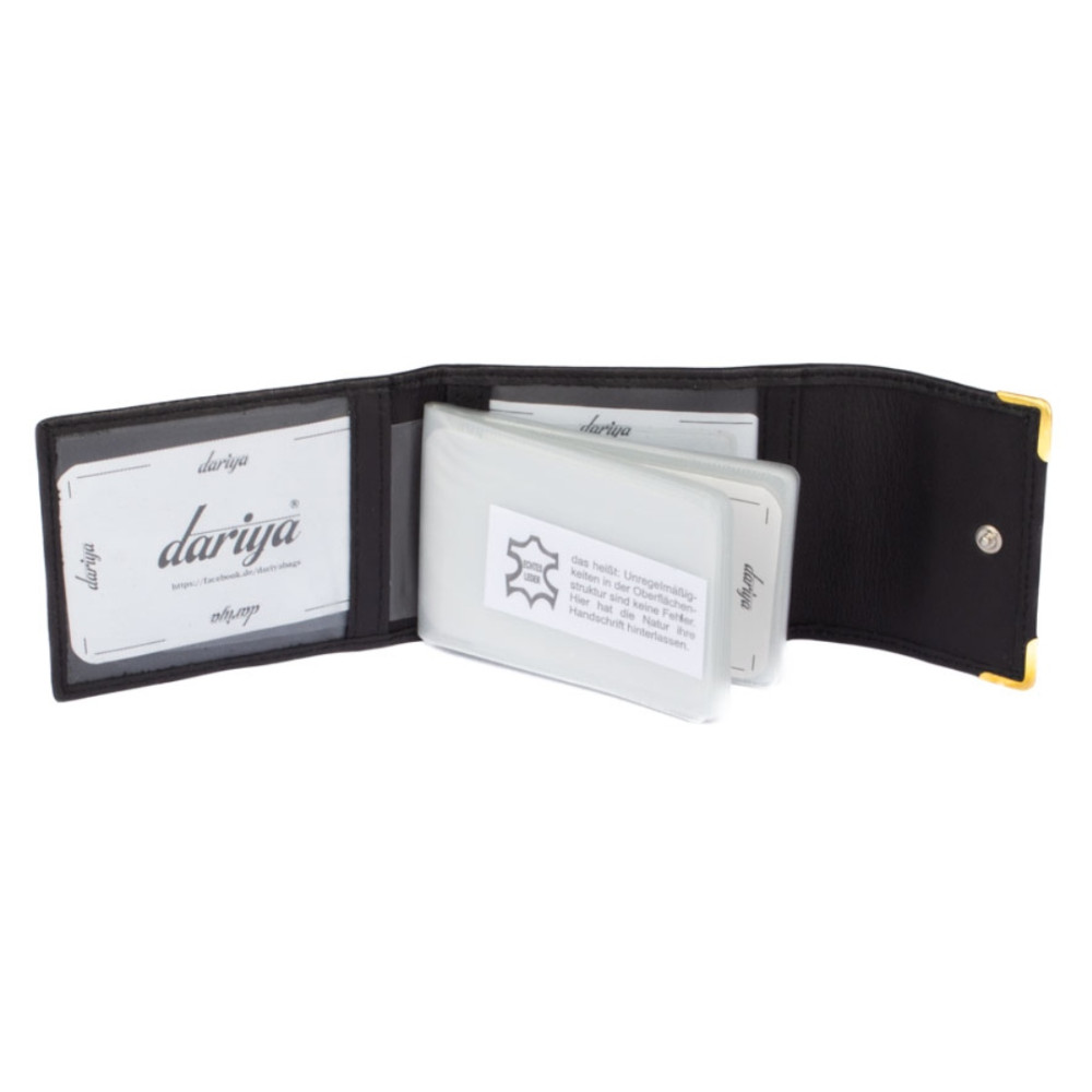 Černé pouzdro na karty z pravé kůže se uzavírá klopou s pevným drukem. Pouzdro lze také využít jako vizitkovník pro uložení vašich vizitek. Chcete obyčejné, ale praktické pouzdro na karty? Pak je toto pouzdro správná volba. Pouzdro má dostatek průhledných kapes z fólie a další kapsy na boku pouzdra. V kapsách z fólie jsou otvory pro snadné vysunutí karet a díky průhledné fólii už nebudete žádné karty hledat. Pouzdro má černou barvu a je vyrobené z pravé kůže. Vizitkovník spolehlivě ochrání vaše karty.