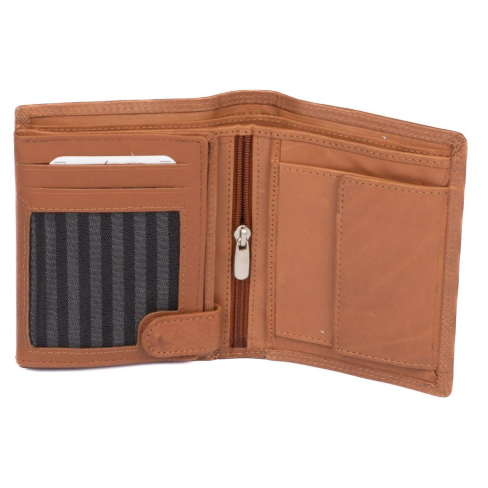 Pokud máte raději menší peněženky je tato hnědá peněženka dámská jasná volba. Po otevření dámské kožené peněženky jsou přístupné kapsy na karty a bankovky, kterých je dostatek pro běžné použití. Samozřejmostí je mincovník s klopou a pevným drukem. Vnitřní kapsy jsou uzavřeny vnitřní přezkou s pevným drukem. Uvnitř jsou velké průhledné kapsy na doklady a další kapsy na karty. Hnědá peněženka dámská je vyrobená z pravé kůže, velmi jemné na dotek, hnědé barvy.
