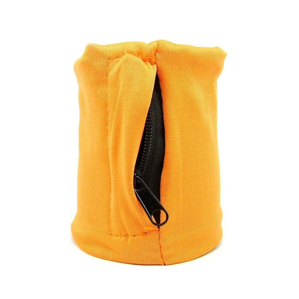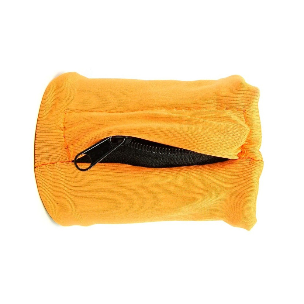 Malá sportovní peněženka s praktickou kapsičkou na zip. Peněženka se nosí na zápěstí a je vyrobená z příjemné textilie. Barva peněženky je oranžová.