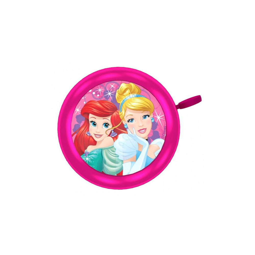 PREXIM Zvonek na kolo Disney Princezny Kovový Tradiční a potřebná pomůcka pro každého majitele kola, lze připevnit i na odrážedlo a jiná vozítka s řídítky. Zvonek má ruční klasické zvonění. Materiál zvonku: KOV Ke zvonku je sada pro pevné přichycení zvonku na kolo. Vhodné od 3 let, není hračka.