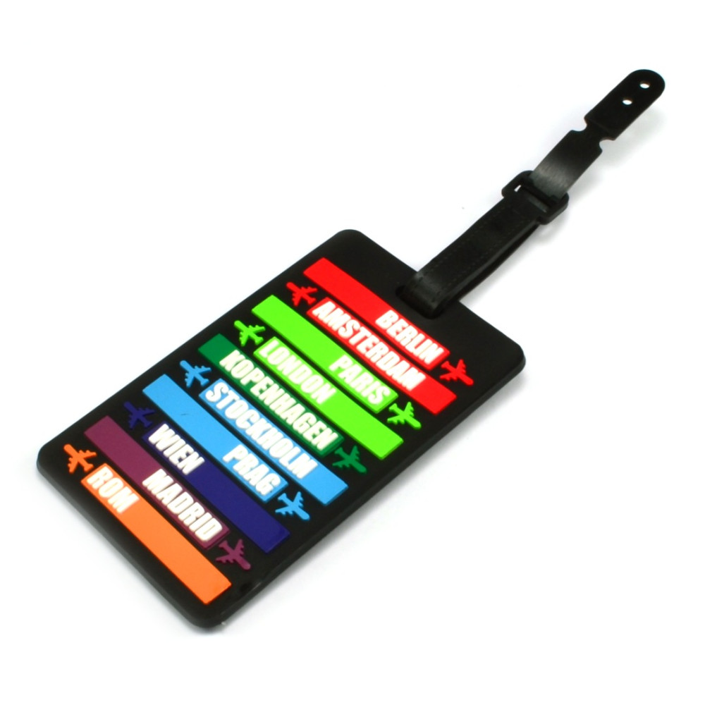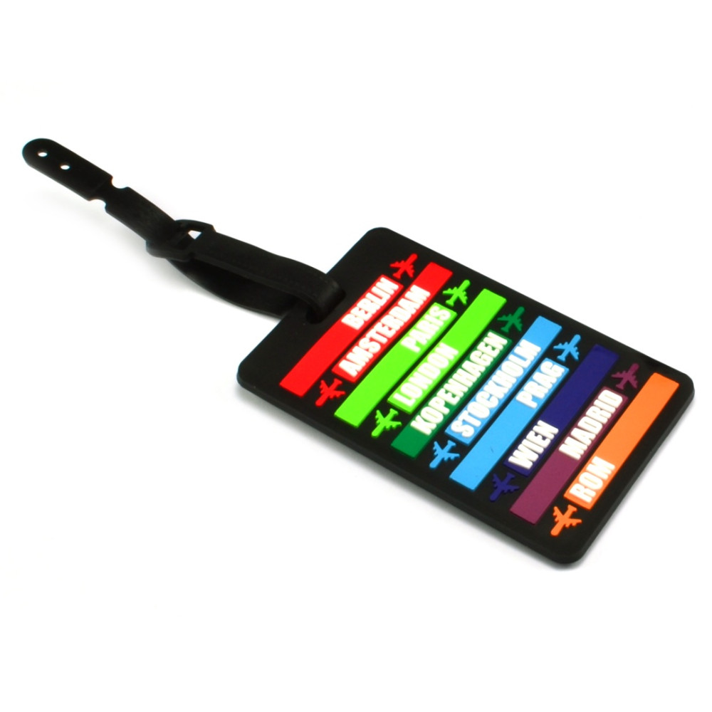 Jmenovka na kufry z umělé hmoty na povrchu pogumovaná je nepostradatelná v případě cestování s kufry. Pevné poutko zajistí, aby se jmenovka z kufru neztratila. Průhledná kapsa, zajištěná poutkem, skrývá prostor pro umístění štítku s adresou.